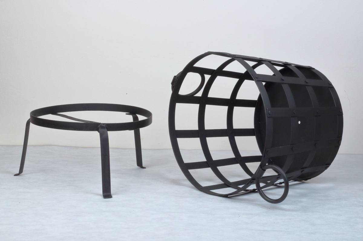 Rozmery: Celková výška kovového ohniště je 54cm. Průmer v horní části kovové obruče je 42cm.