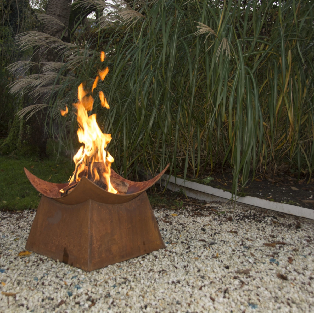 Keď kov oxiduje, získava pekný a autentický hrdzavý vzhľad, navyše oheň v záhrade poskytuje príjemnú atmosféru a je skutočným pútačom očí.