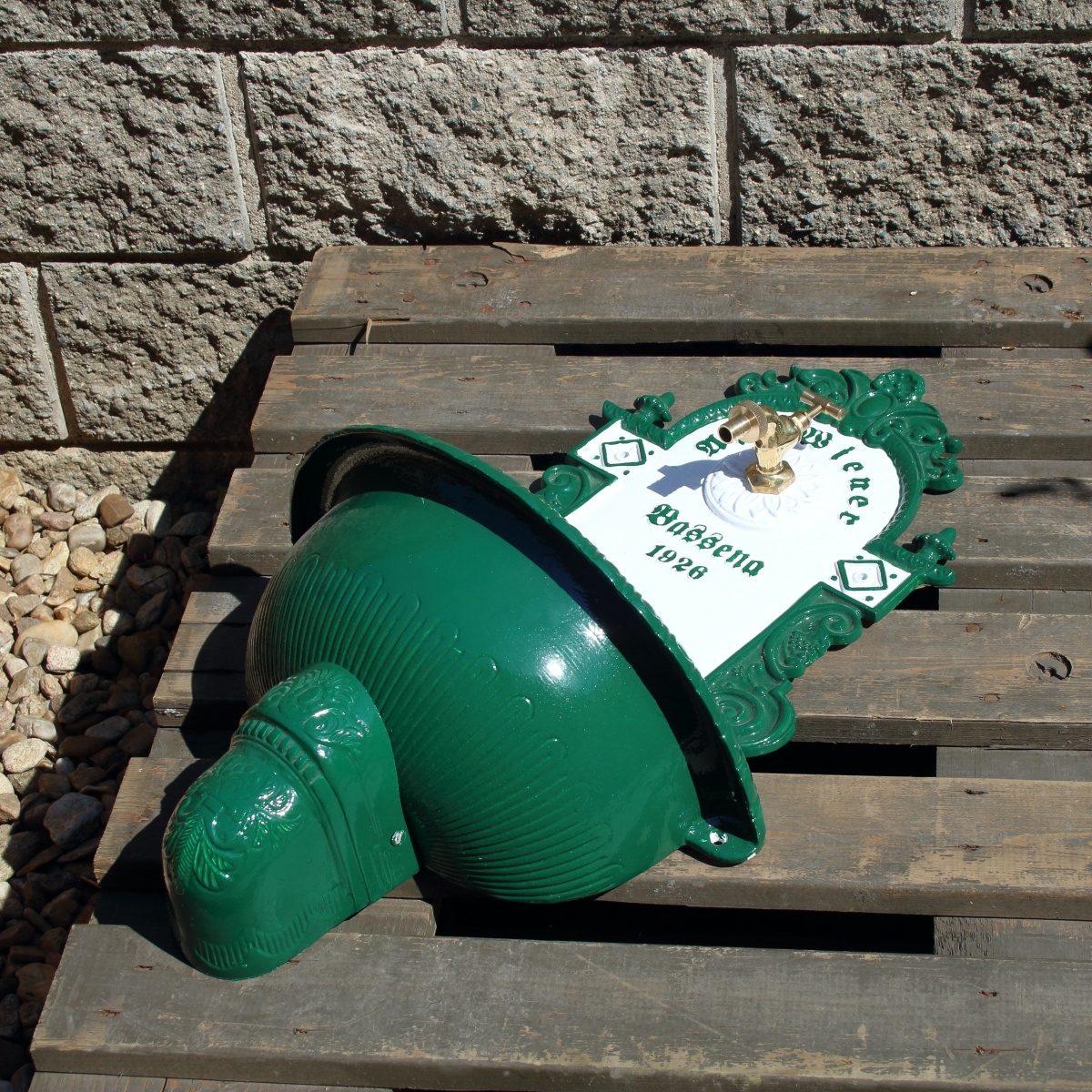 Zahradní umyvadlo Bassena zelené 43,5 x 21 x 72cm včetně krytu odpadu.