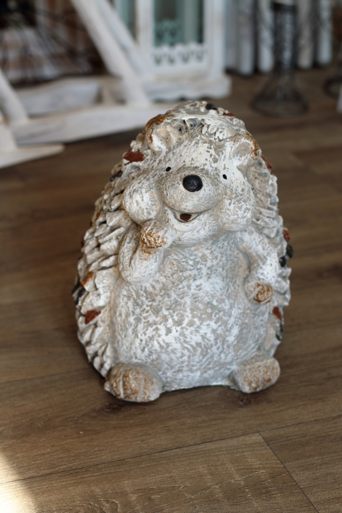 Ježek má roztomilý obličej a bodlinky jsou vytvořeny pomocí kamínků. Bude mu to slušet v každé zahrádce i u vstupu do domu.