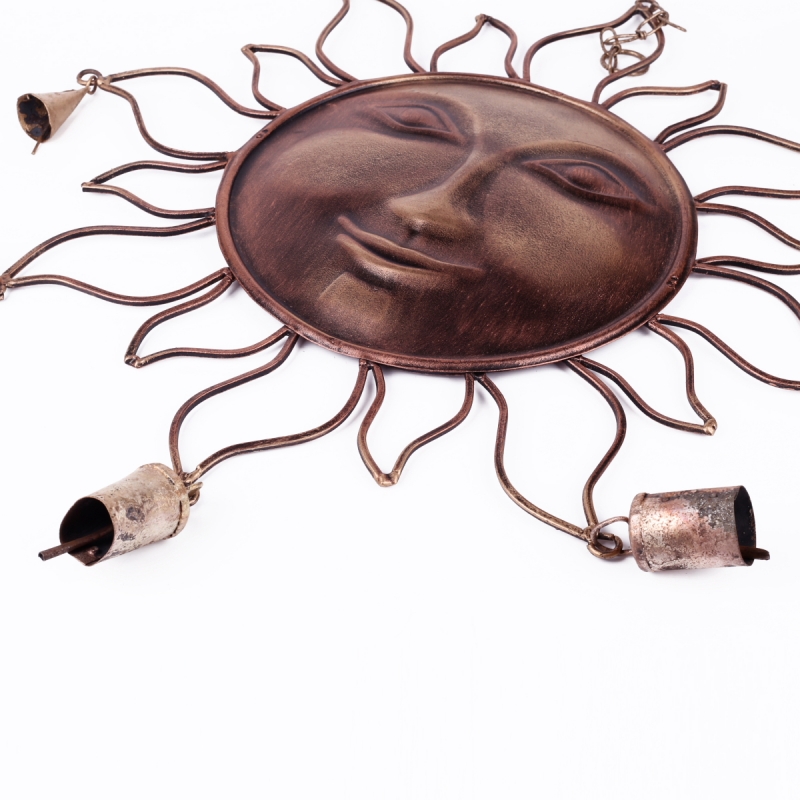 Záhradné dekorácie kovové slnka sa zvončeky veľké 50cm rozžiaria Váš dom! Krásne kovové slnko sa hodí ako dekorácia na strešné štít, alebo na fasádu domu. Zvončeky príjemne cinkajú a prinesú tak energiu k Vám do domu.