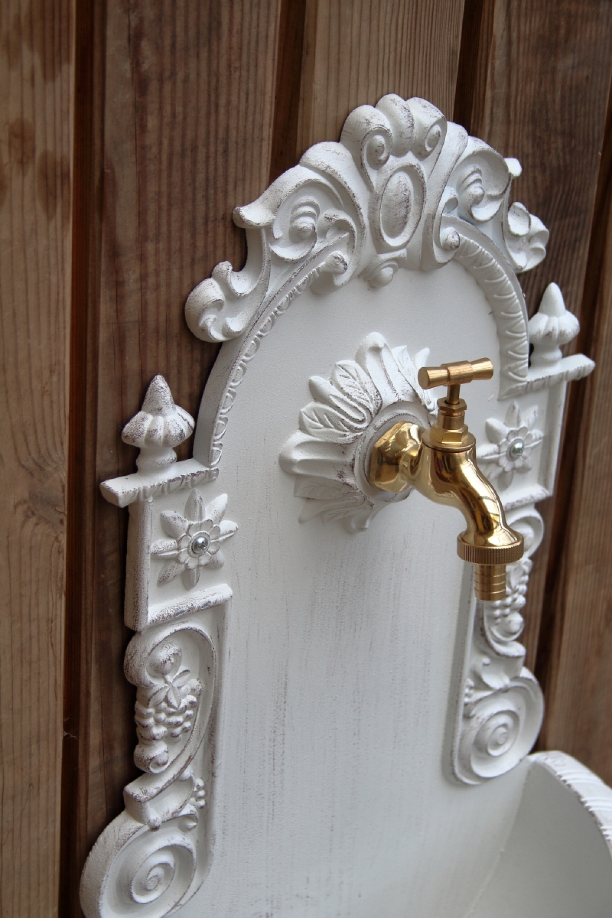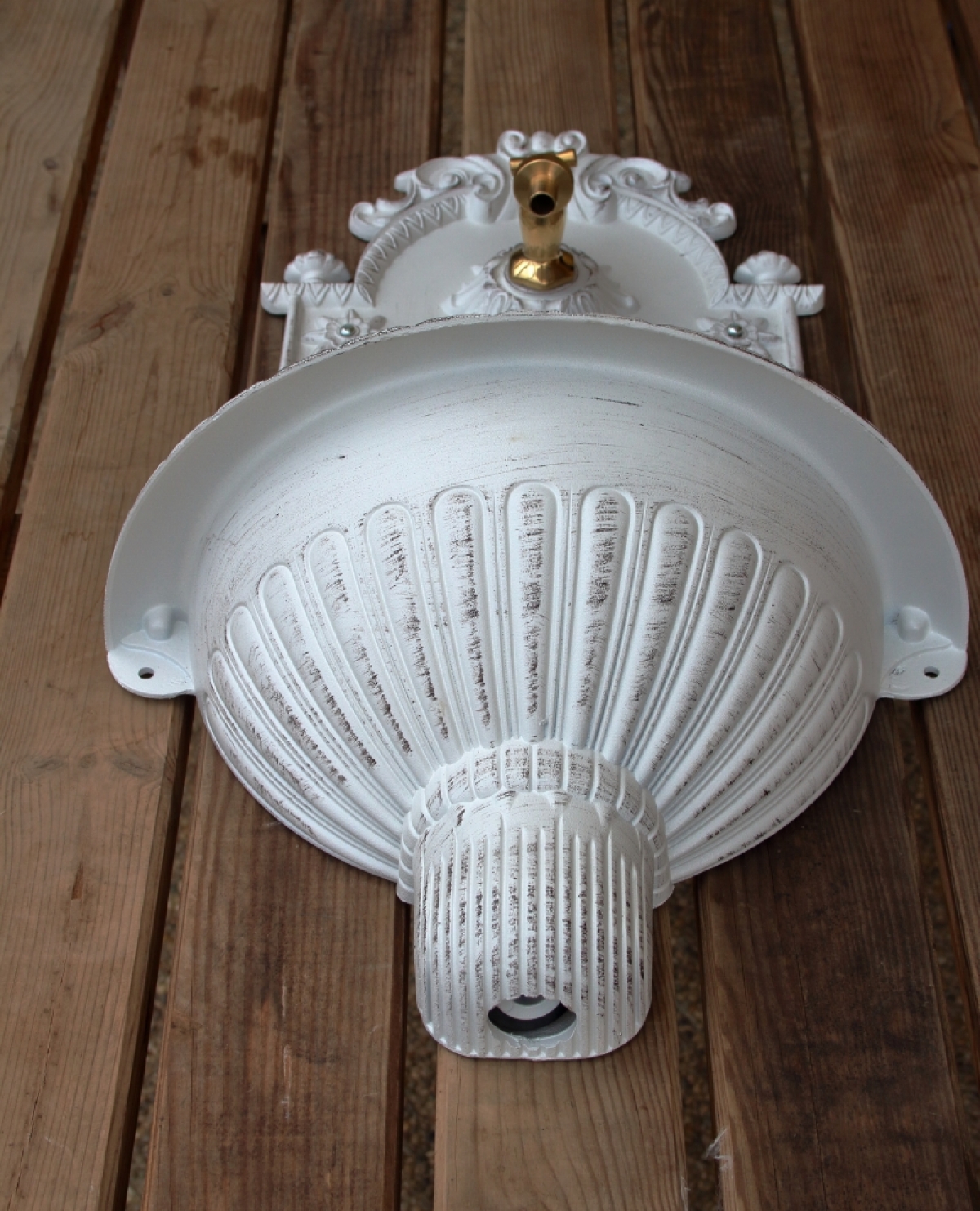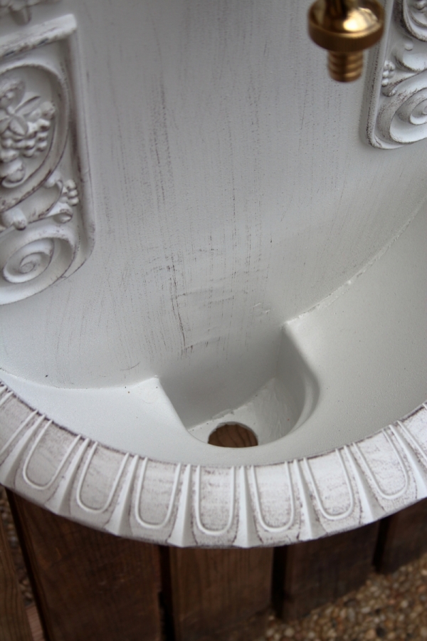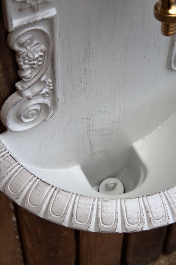 Záhradné umývadlo s patinou na povrchu.
