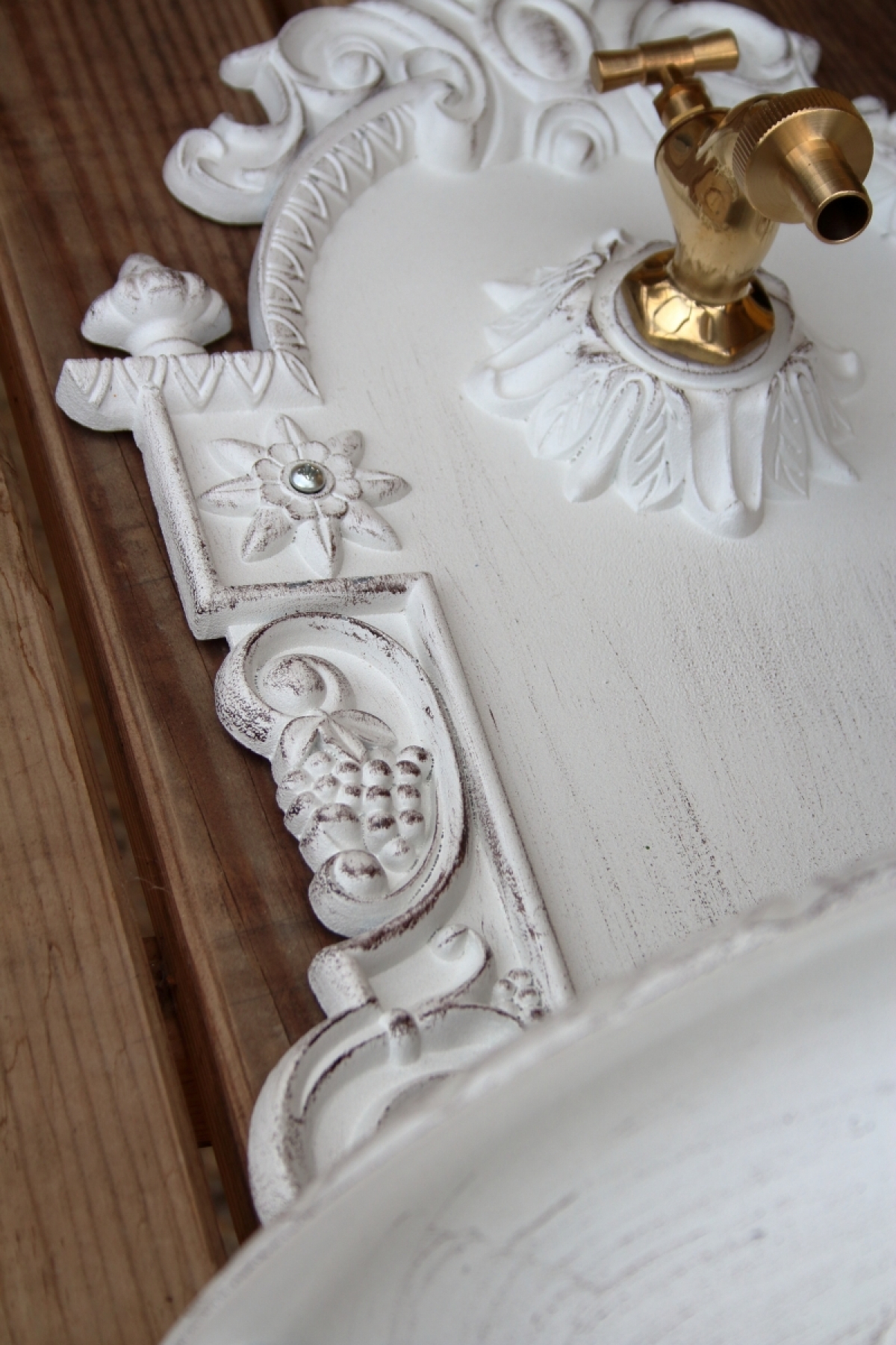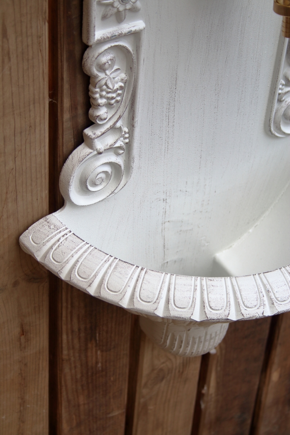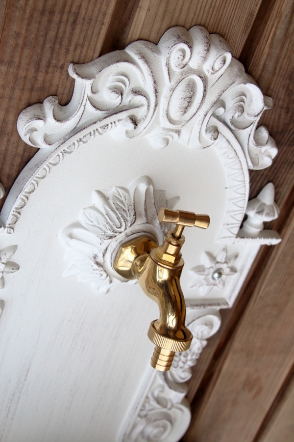 Záhradné umývadlo s patinou na povrchu.