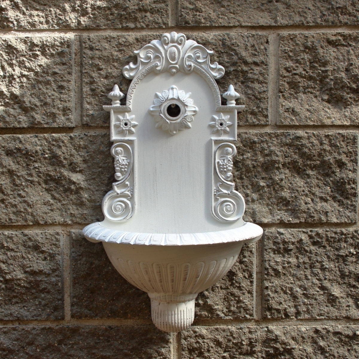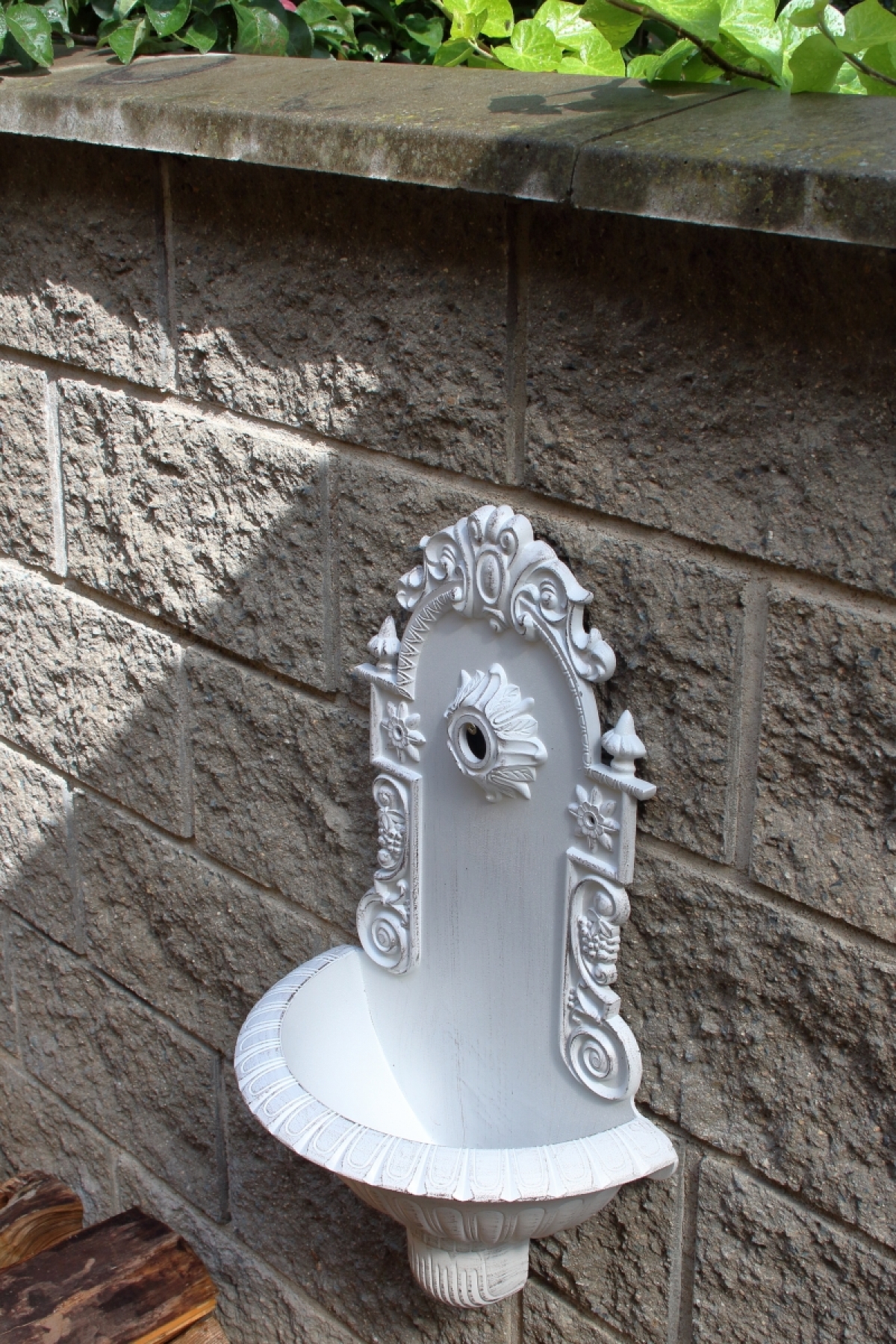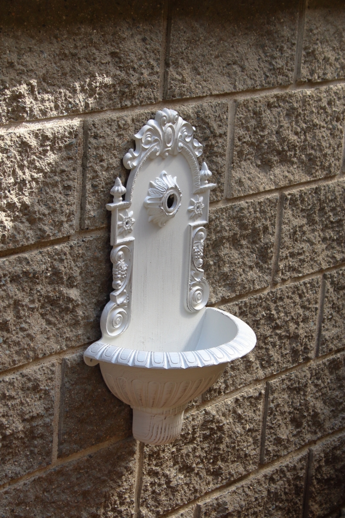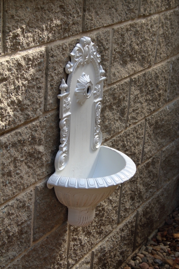 Zahradní umyvadlo o rozměrech š.39 × v.61 × (zasahuje do prostoru) 19 cm je vyrobené z odlehčeného materiálu.