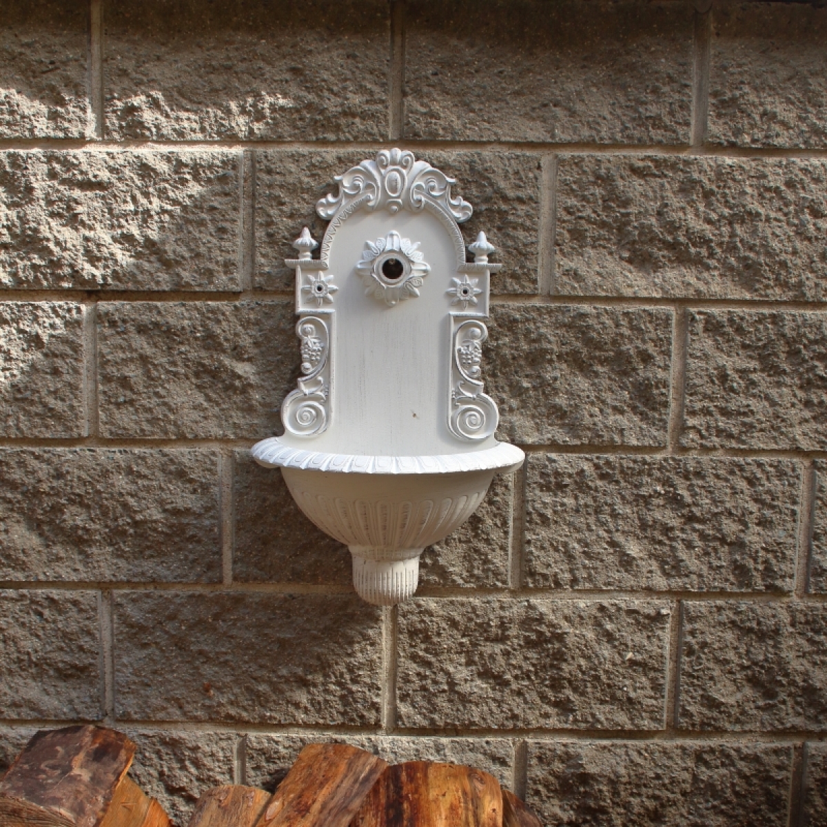 Zahradní umyvadlo o rozměrech š.39 × v.61 × (zasahuje do prostoru) 19 cm je vyrobené z odlehčeného materiálu.