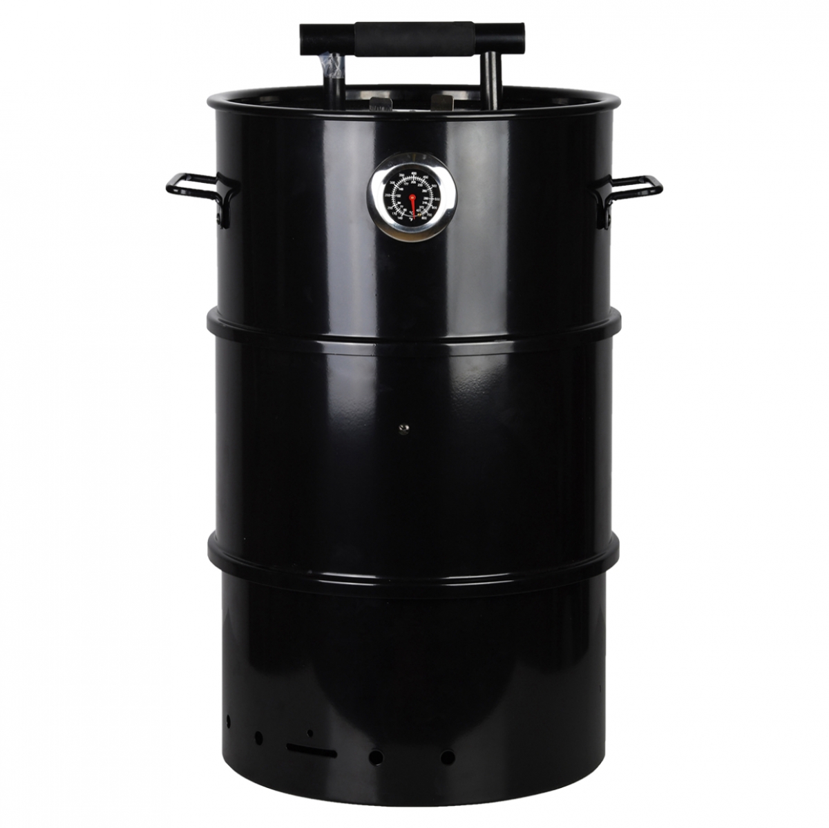 Záhradný gril s udiarňou v prevedení čierneho barelu.