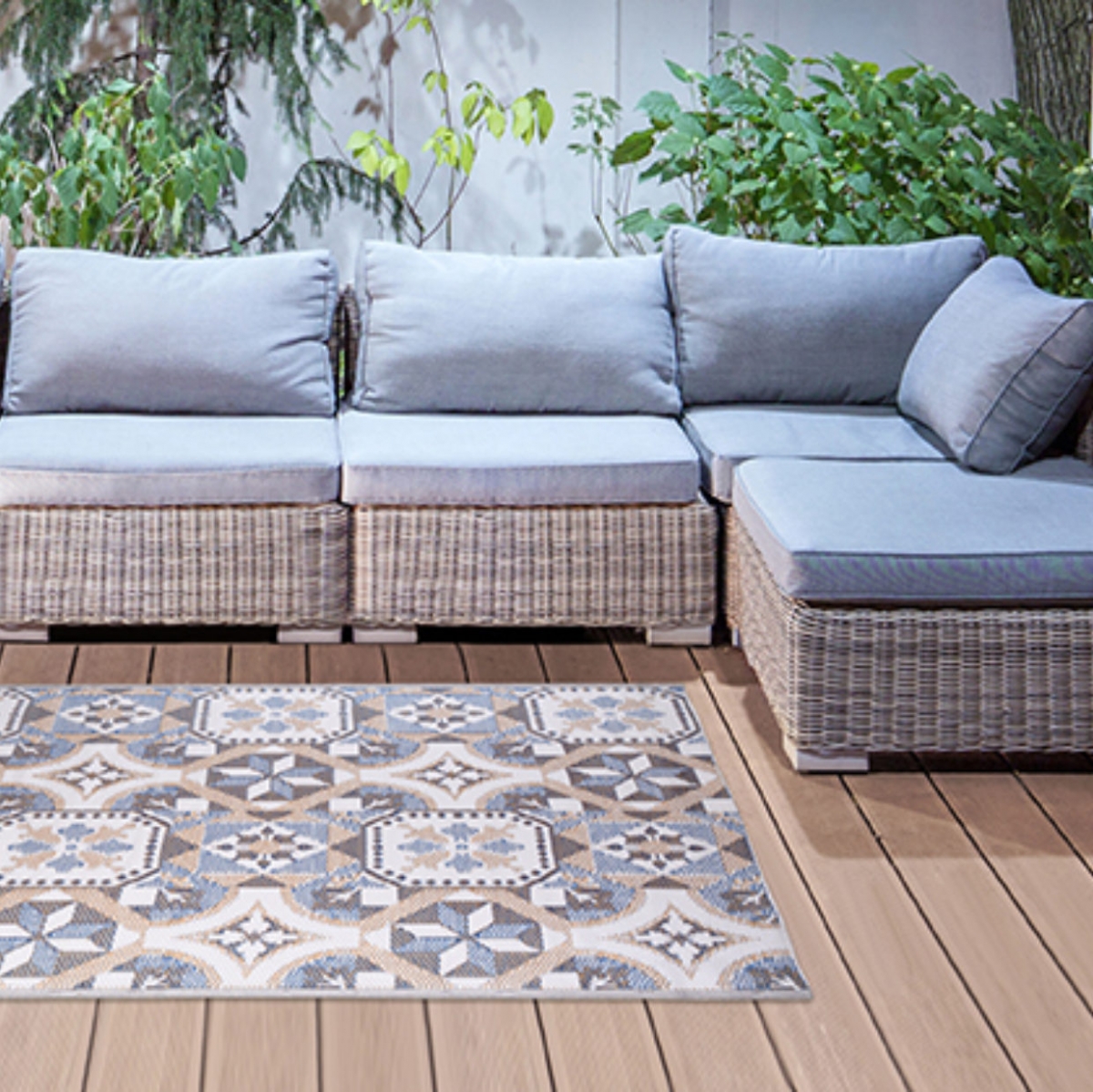 Tento obdĺžnikový záhradný koberec zaujme na prvý pohľad svojim dizajnom, ktorý je inšpirovaný portugalskými dlaždicami. Nápaditý vzor skvele doplní každé záhradné posedenie. Veľkou výhodou je aj skutočnosť, že je obojstranný, teda sa nám len tak neopozerá.