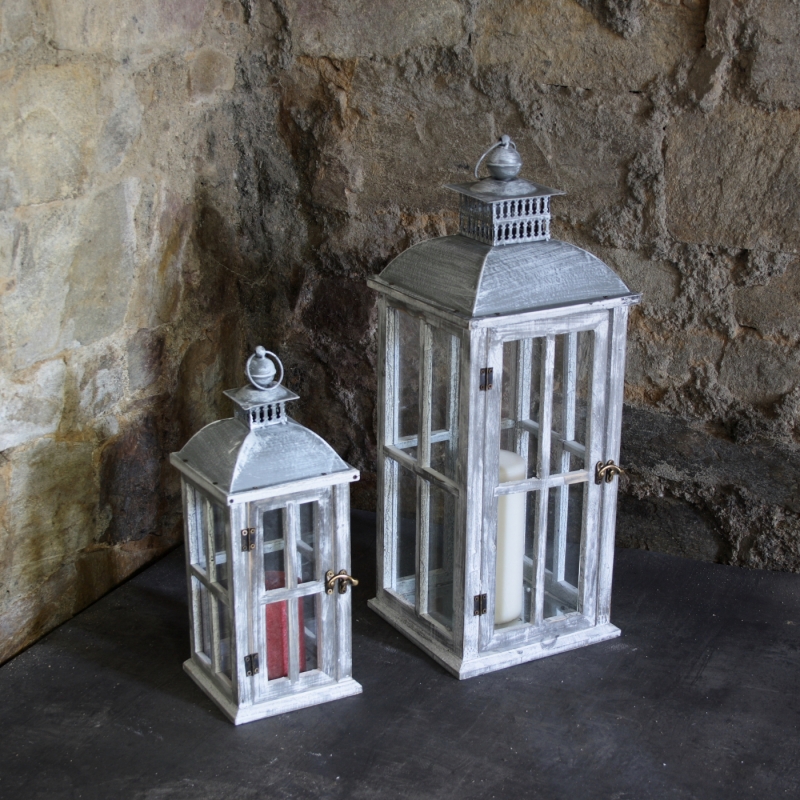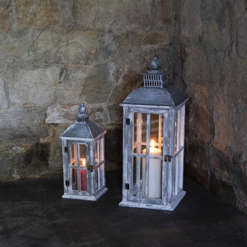 Záhradný lampáš biela s patinou set 2ks 37 / 56cm