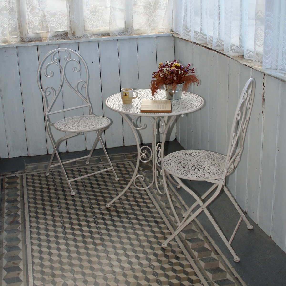 Táto sada záhradného nábytku sa skladá zo stolíka a dvoch stoličiek v rovnakom dizajne. Nábytok bude ozdobou každej záhradky, bude sa skvele vynímať aj na záhradke reštaurácie alebo hotela.