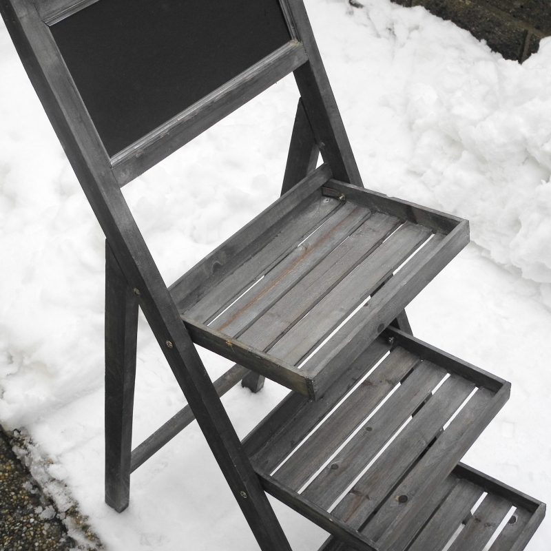 Záhradný nábytok - kvetinový stojan má rozmer 48 × 35 × 150 cm. Je vyrobený z dreva a opatrený tabuľou a troma policami.