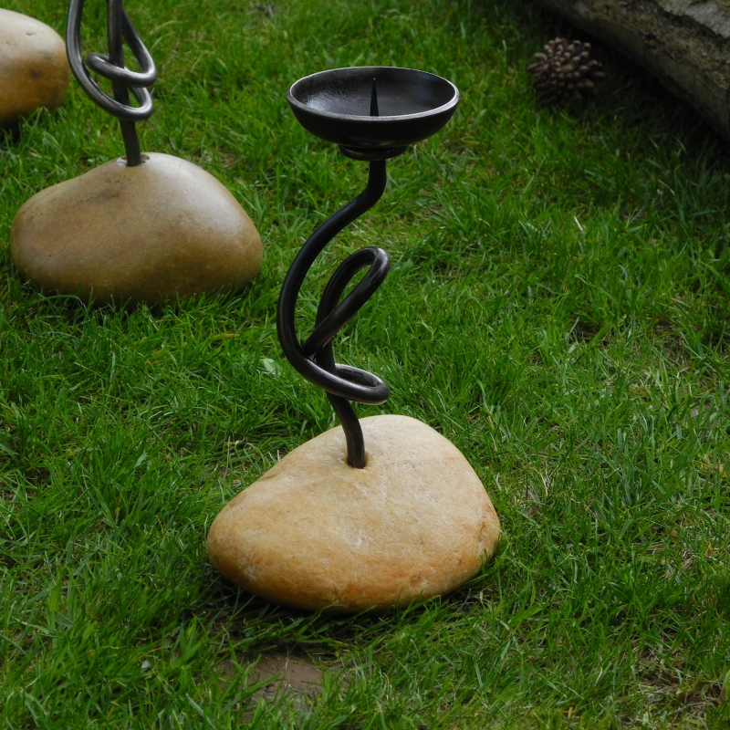 Záhradný svietnik v kameni ručne kovaný 24cm