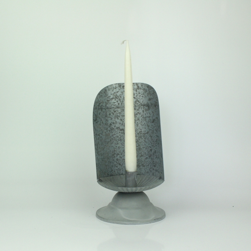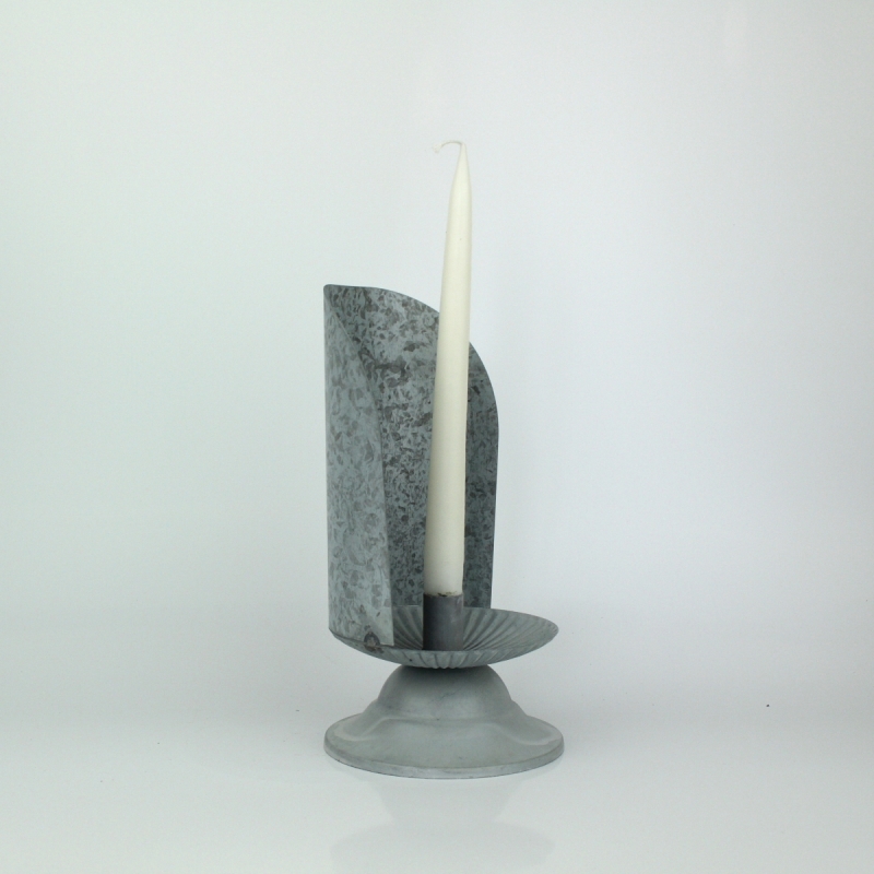 Jednoduchý kovový držiak na sviečku má praktickú mištičku na odkvapkávanie vosku. Nemôže sa tak stať, že by Vám sviečka poškodila obrus alebo dosku stola.