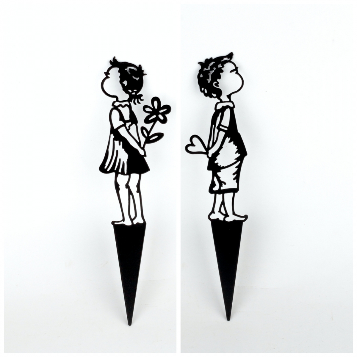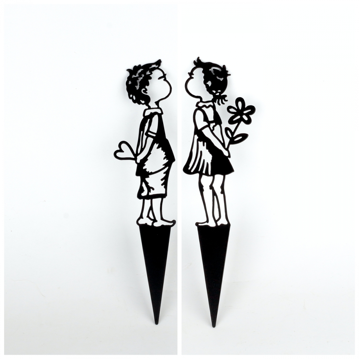 Zápich do kvetináča dodávame v dvoch prevedeniach chlapec/dievča. Do jedného kvetináča môžete zapichnúť oba zápichy súčasne a ich postojom dať najavo aktuálnu náladu. Pozri. obr. 5. a 6.
