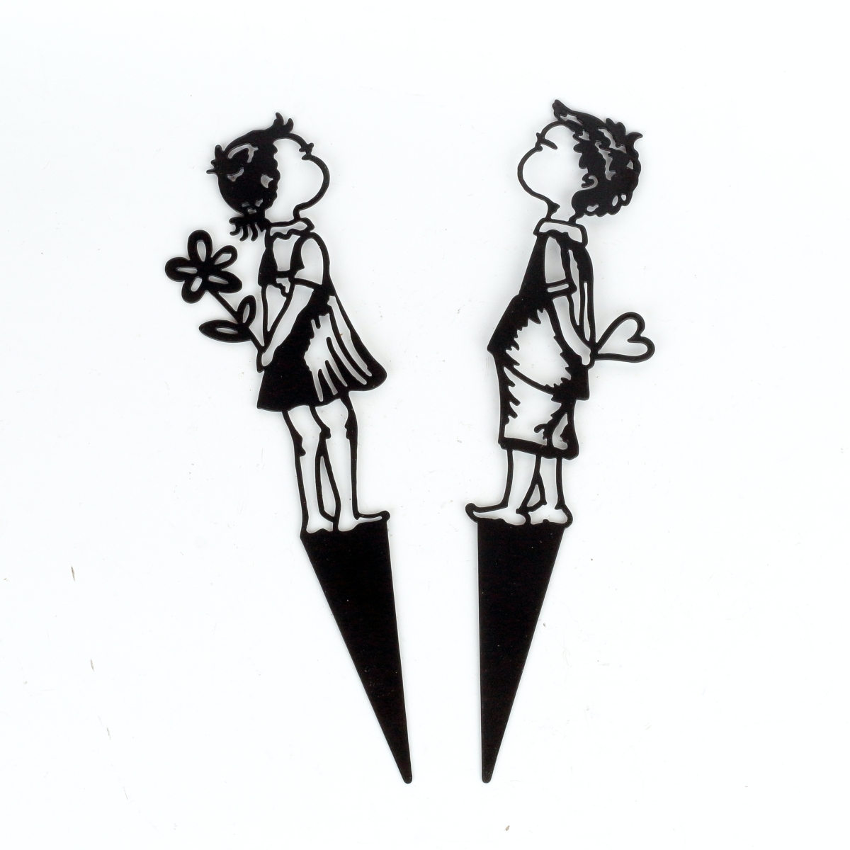 Zápich do kvetináča dodávame v dvoch prevedeniach chlapec/dievča. Do jedného kvetináča môžete zapichnúť oba zápichy súčasne a ich postojom dať najavo aktuálnu náladu. Pozri. obr. 5. a 6.
