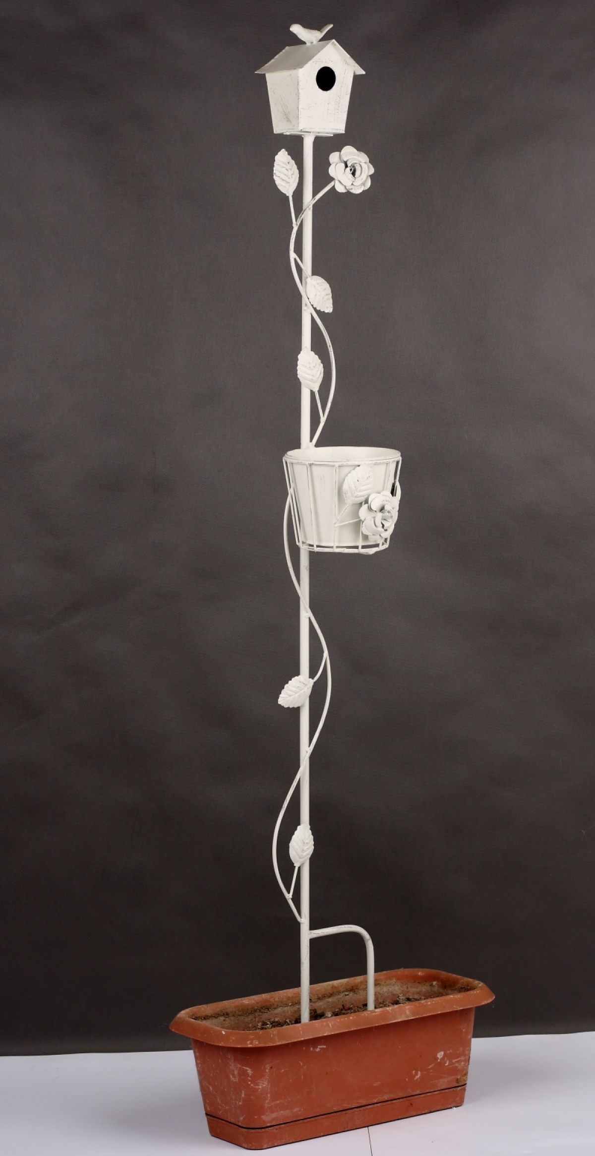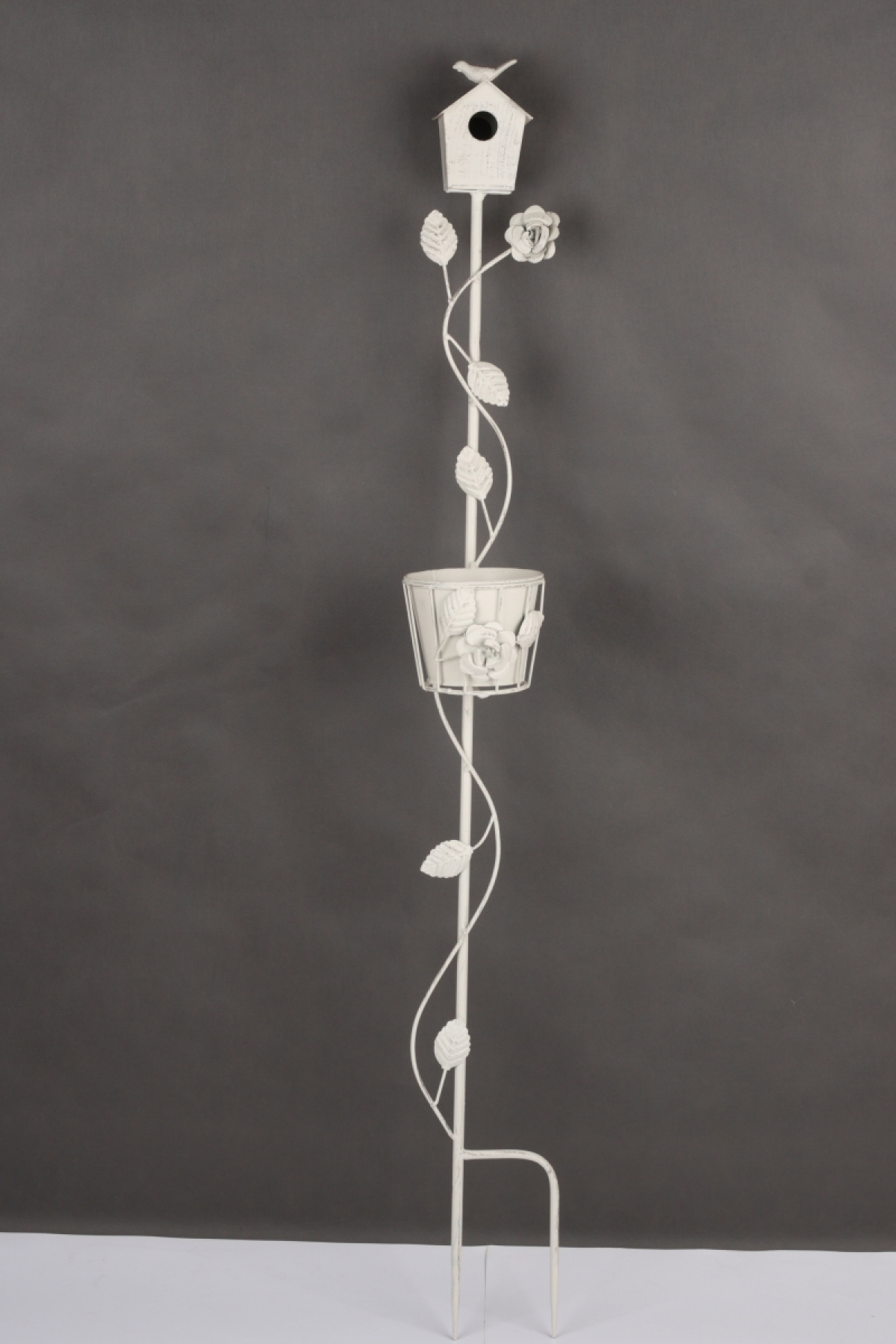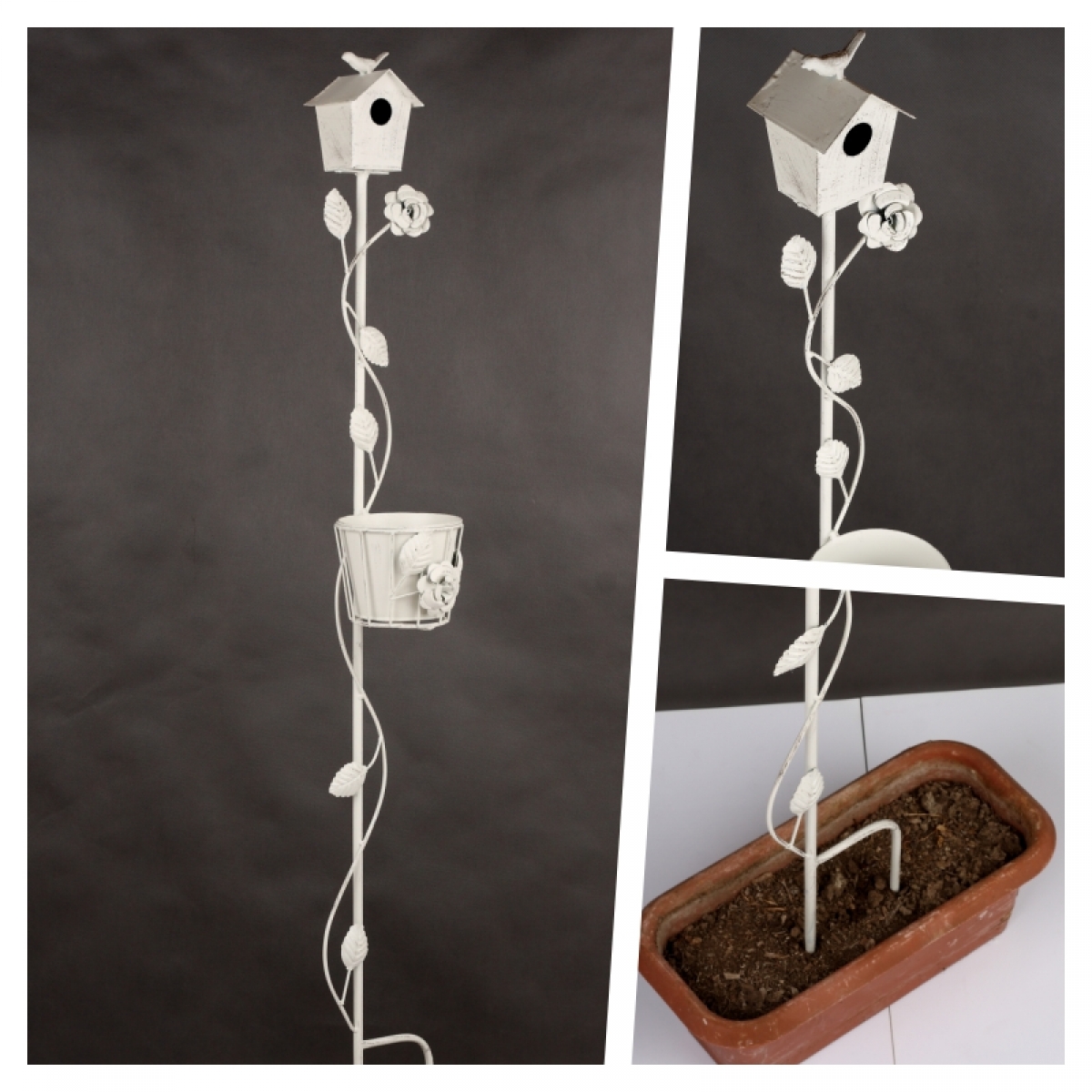 Zápich dopĺňa košík na kvetináč a roztomilá búdka s vtáčikom.