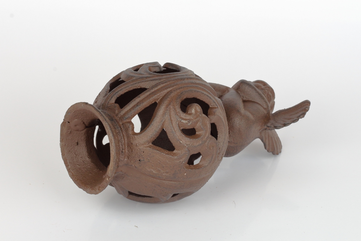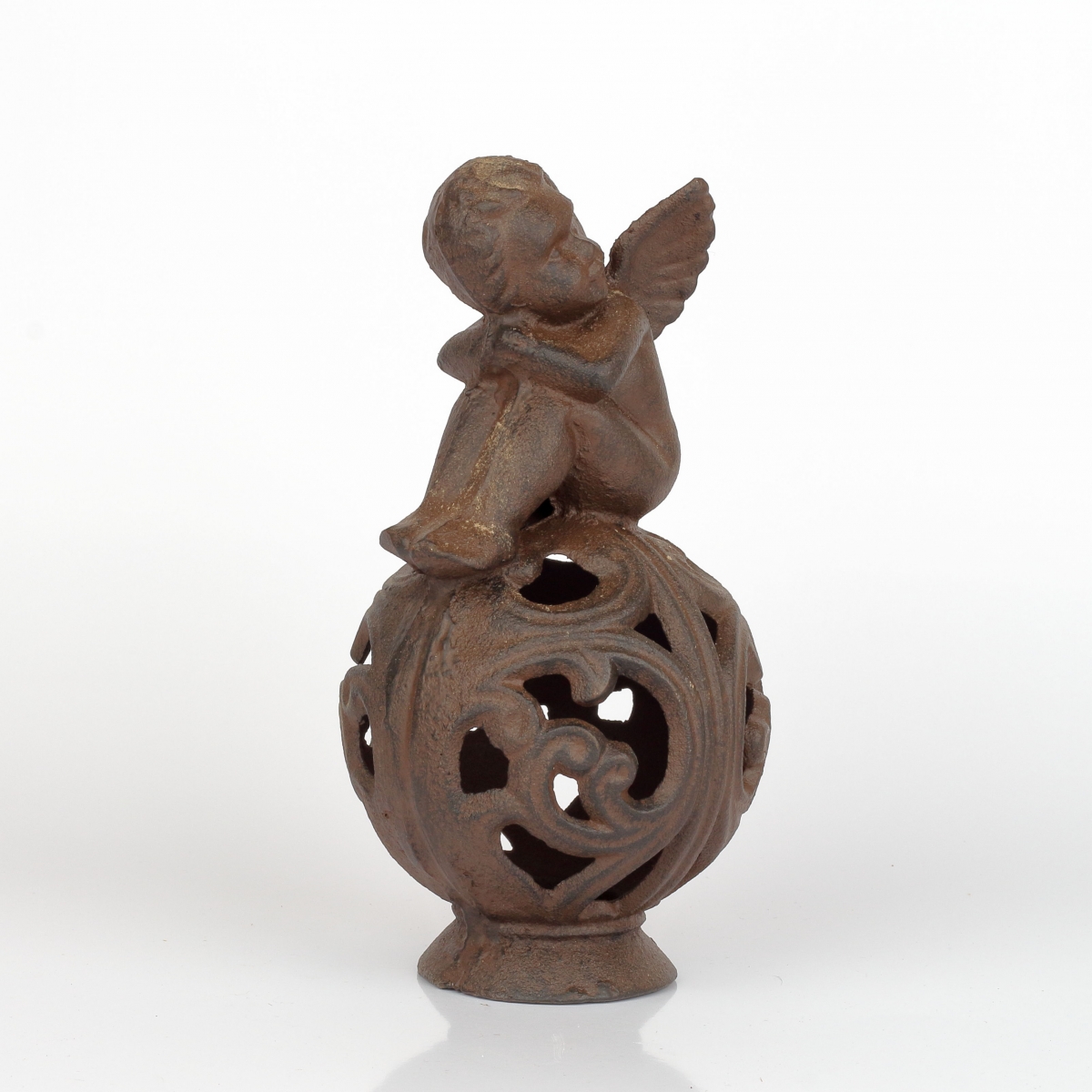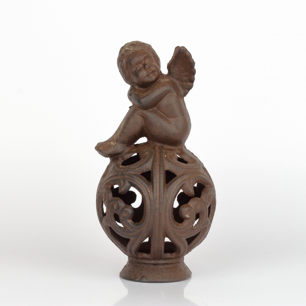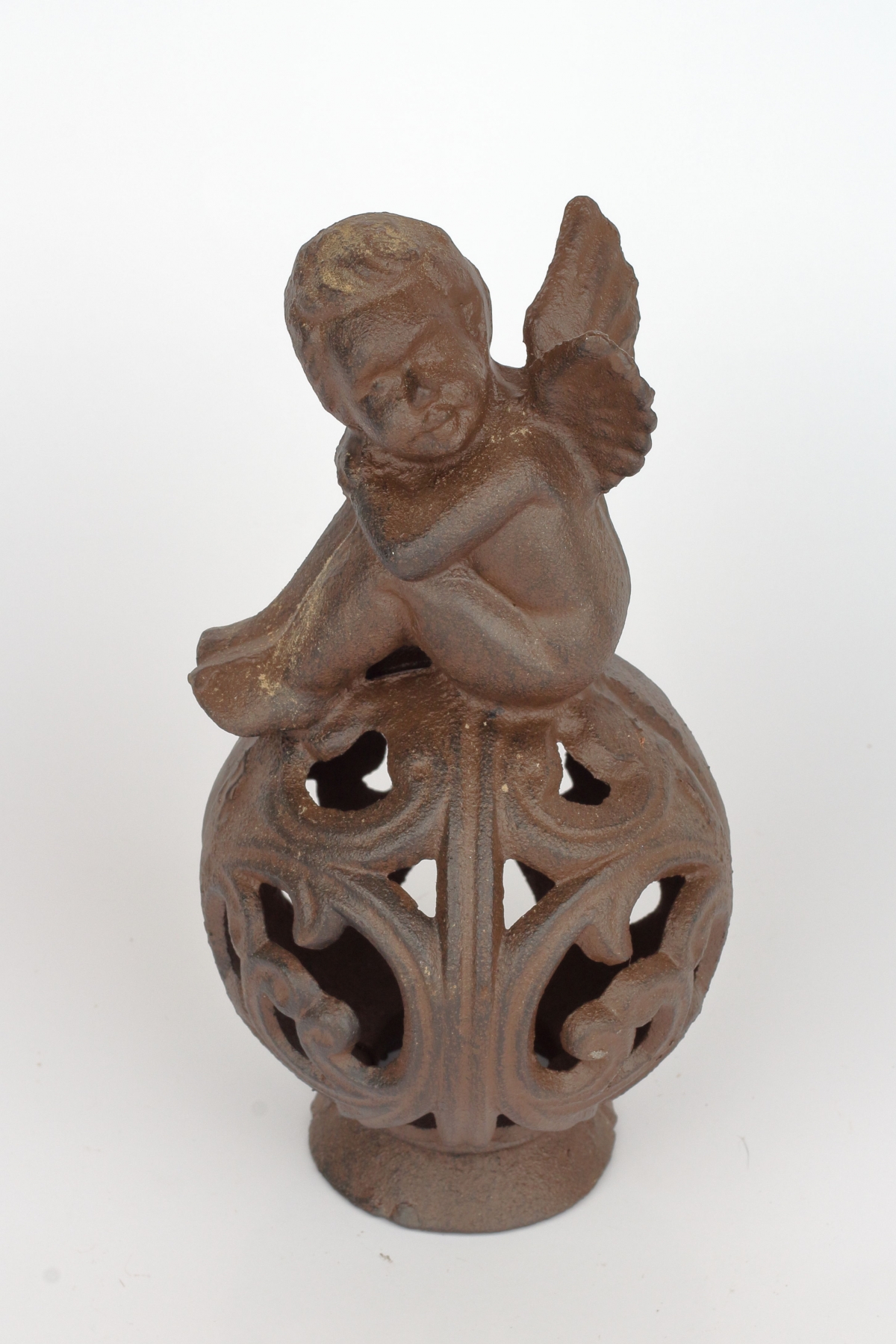 Liatinová gule sa sediacim anjelom by určite bola aj plnohodnotnú dekoráciou interiéru i záhrady. Je tak len na Vás, ako ju využijete.