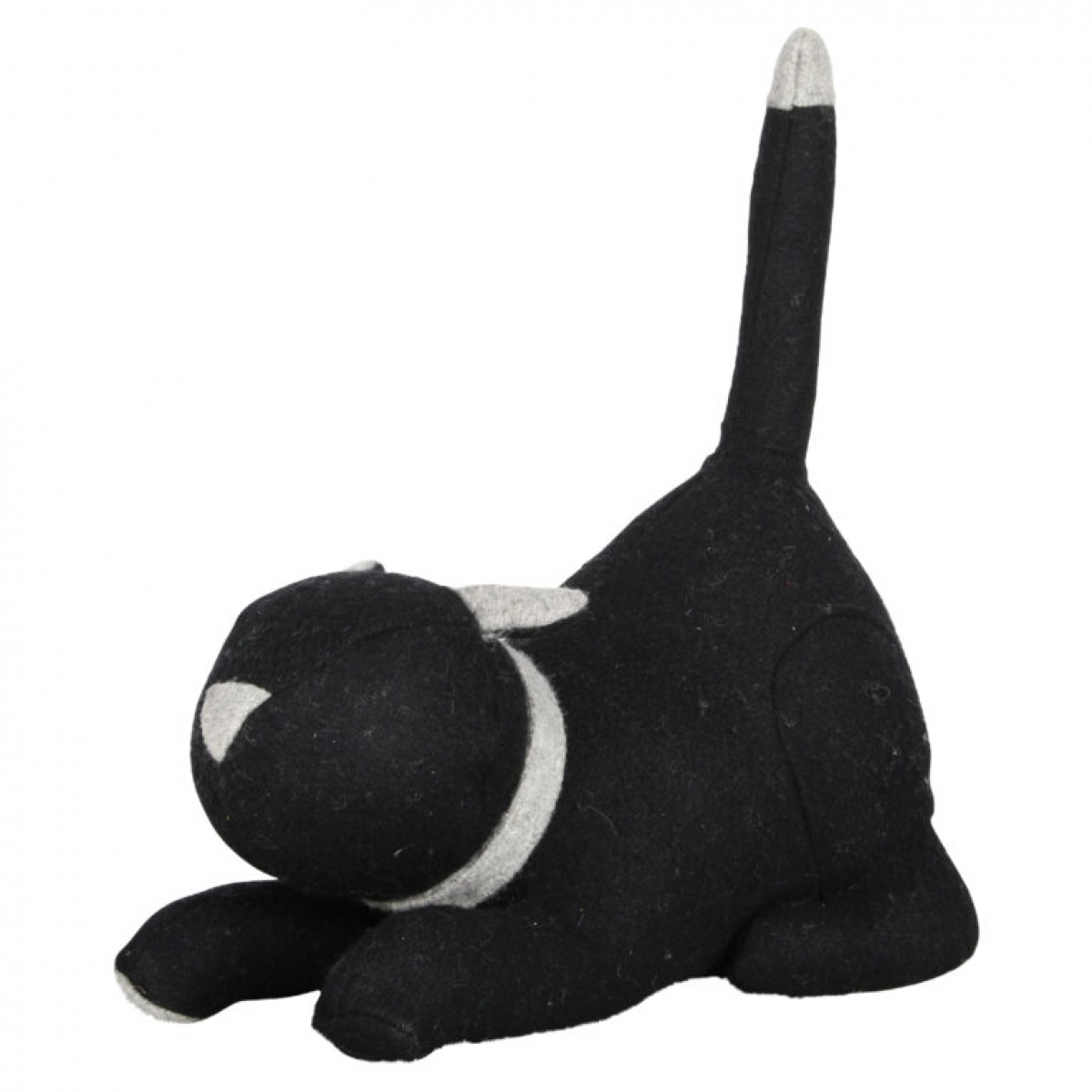 Zarážka na dvere z plsti v podobe čiernej mačky so zdvihnutým chvostíkom