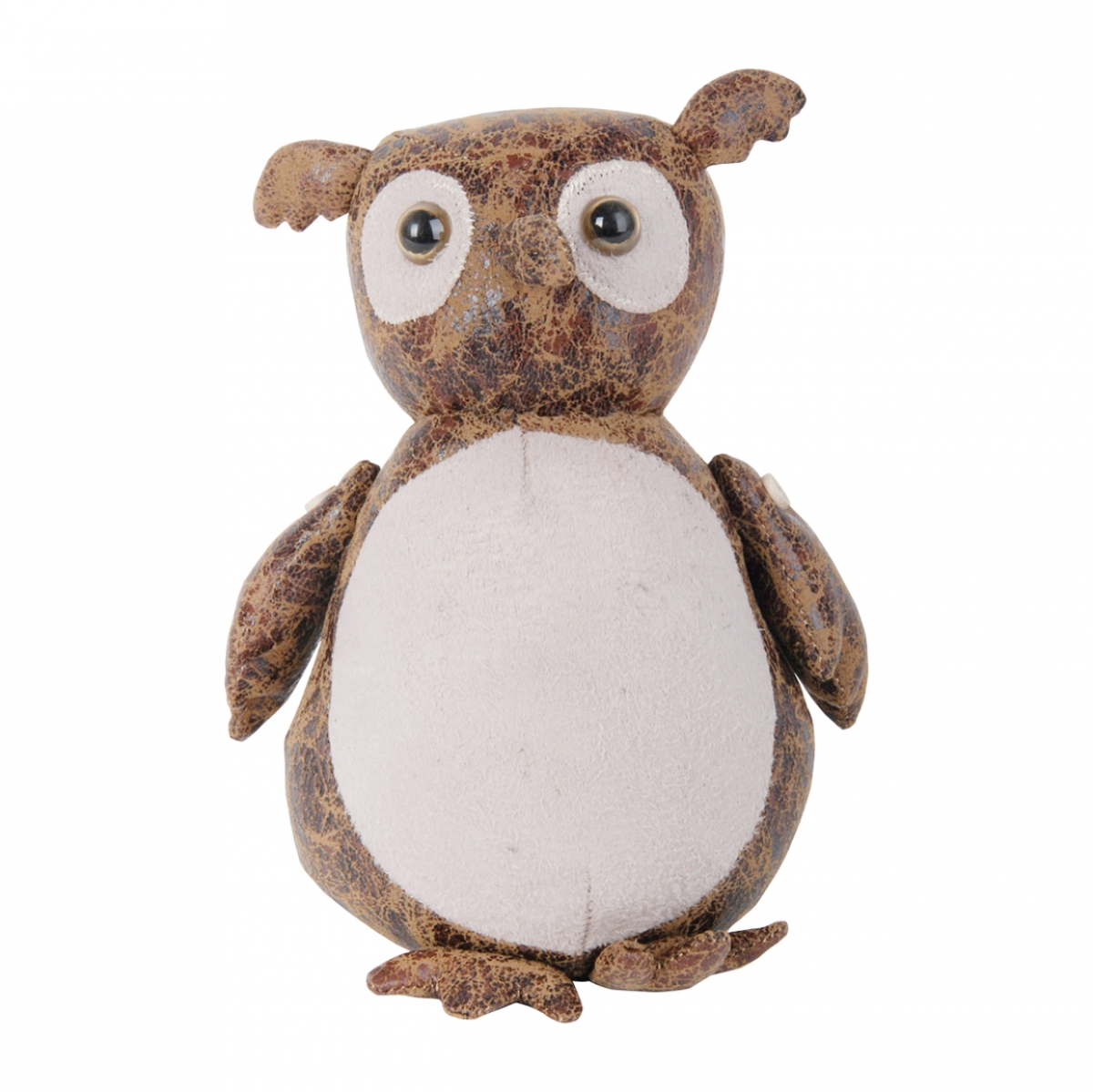 Zarážka na dvere kožená sovička vo farebnom spracovaní hnedej s patinou v kombinácii s krémovou bielou.