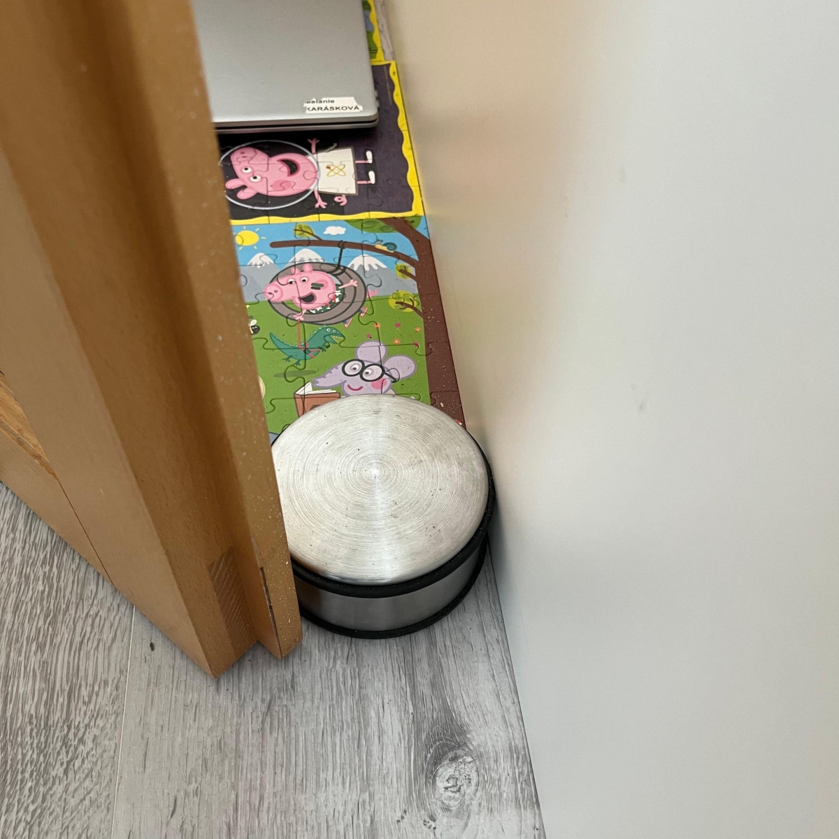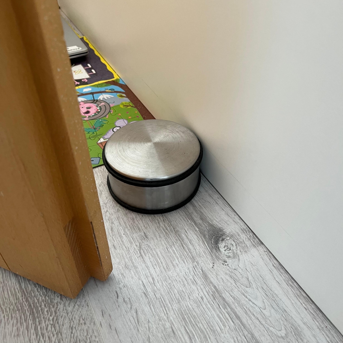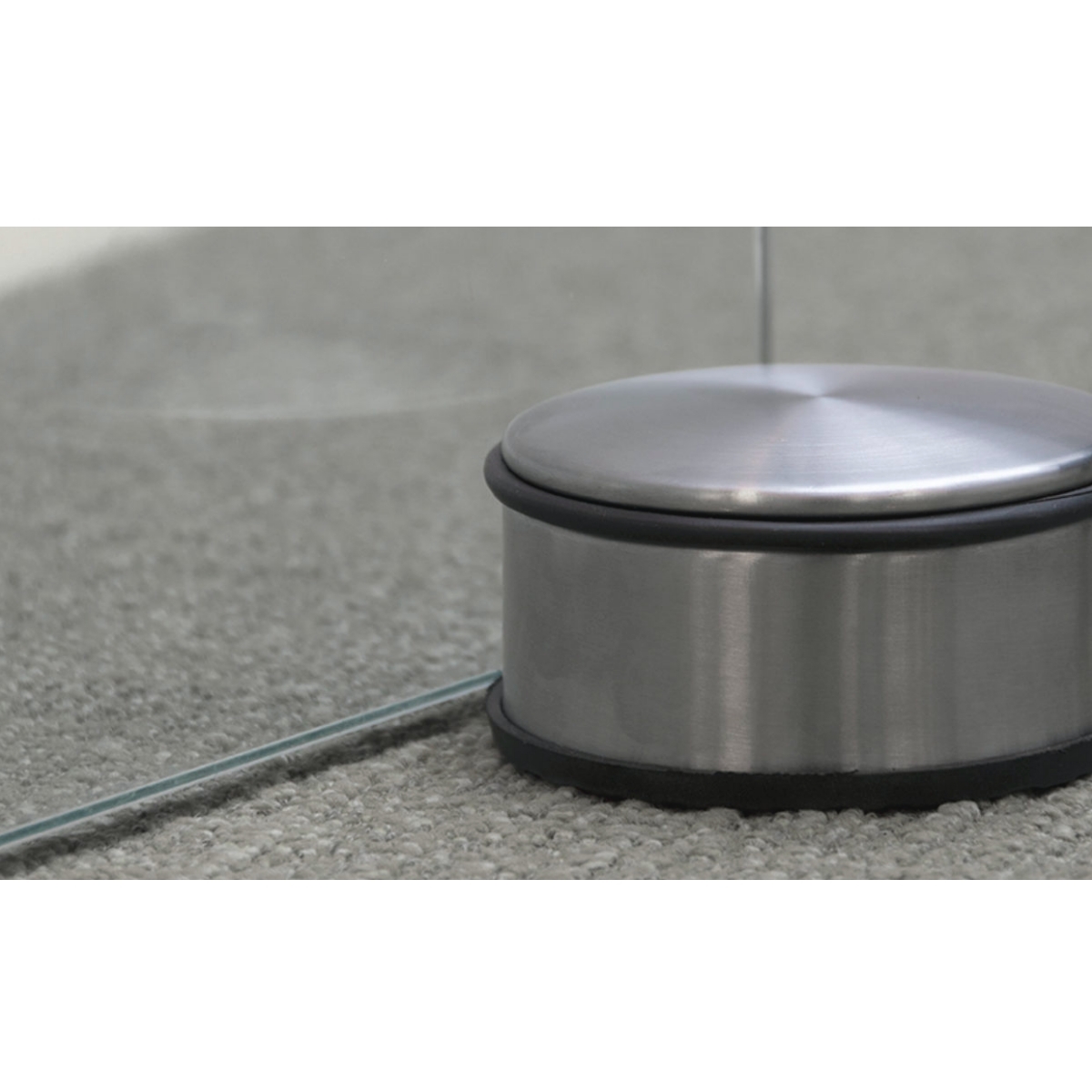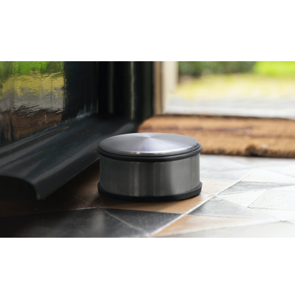 Už žiadne trieskanie dverí vďaka tejto funkčnej zarážke z nerezovej ocele. Zarážka je opatrená gumovou ochranou na bočnej a spodnej strane, aby sa zabránilo poškriabaniu dverí a podlahy.