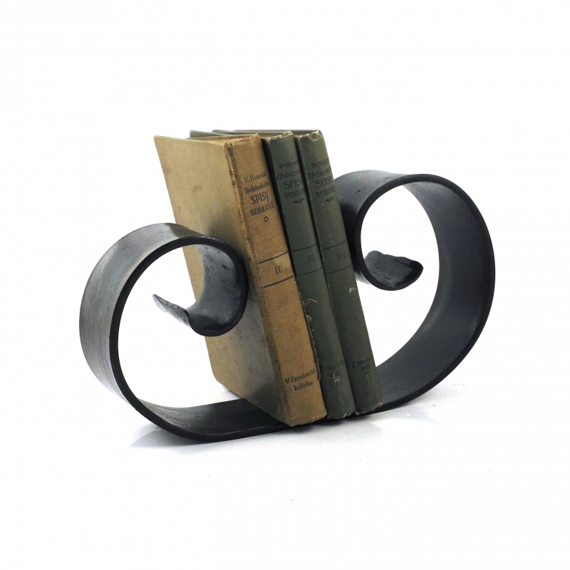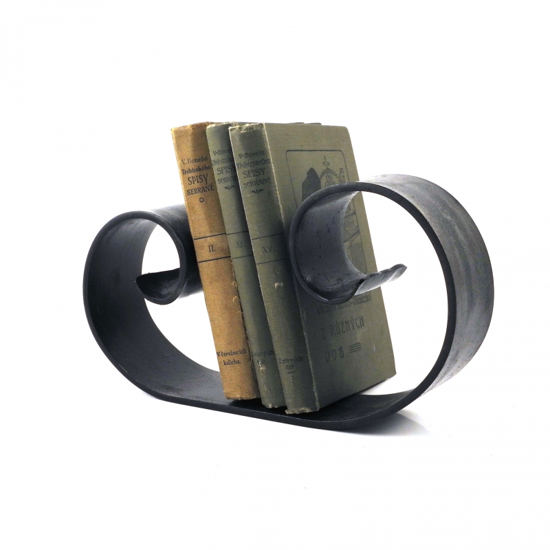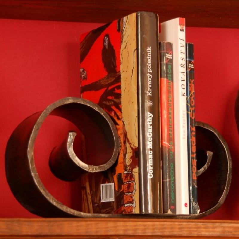Knižnica, ktorú ponúkame, je " mláďaťom tej pod číslom 1857. Aj ona pripomína slimáka, len trochu subtilnějšího. Knižnica z oceľovej pásoviny o šírke 60 milimetrov je široká 27cm. A trúfne si aj na knihu o váhe 1750 gramov. V byte, chalupe i chate sa bude slimáčik - knižnica nádherne vynímať. Oceňte výrobok slovenských kováčov!