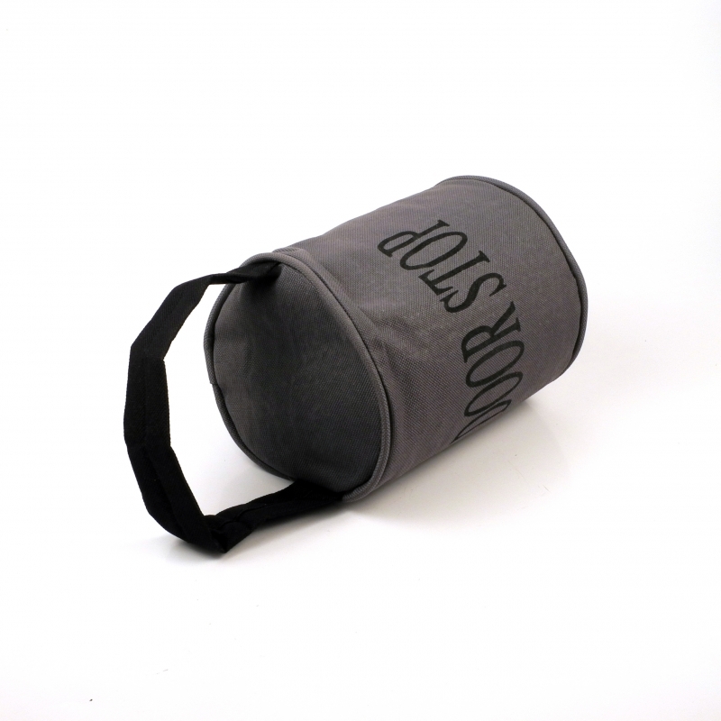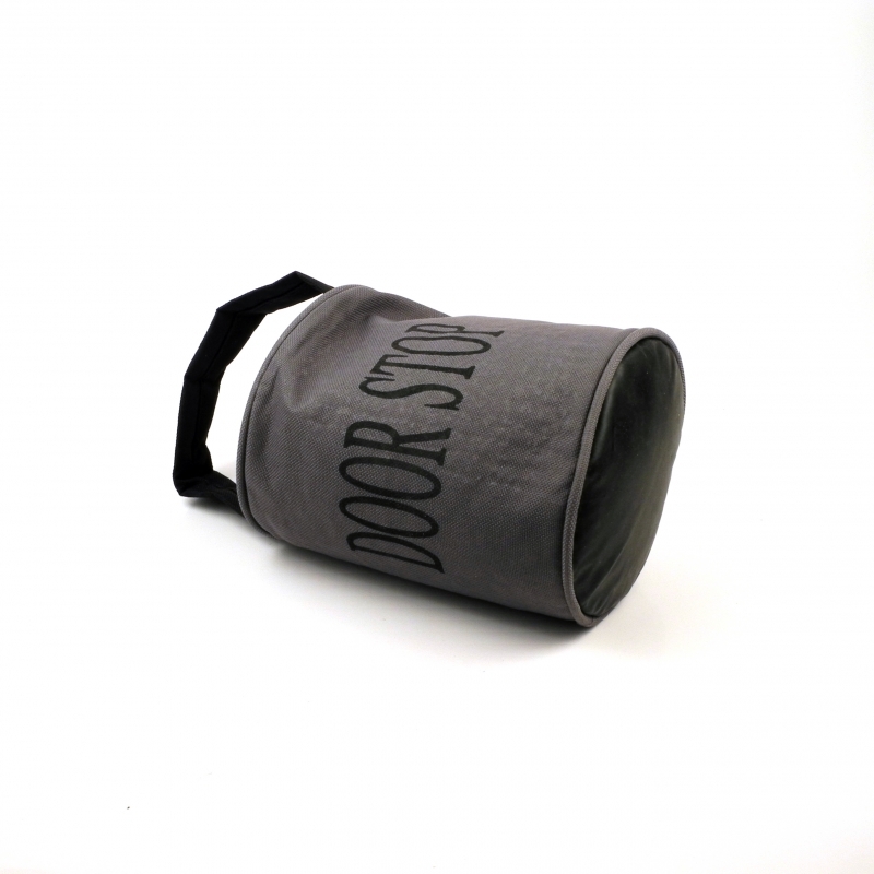 Zarážka za dvere vyzerá ako malý vrece. Je 15 cm vysoký a má priemer 12 cm.Jeho farba je sivastá a nájdete na ňom čierny nápis, ktorý hovorí, k čomu je vrece určený. V čiernej farbe je vykonané aj ucho. Spodná časť vreca je kožená, pevná pytlovina potom zaručuje, že piesok z vreca sa nedostane von.Tento pekný štýlový pomocník zabráni nepríjemnému búchanie dverí.