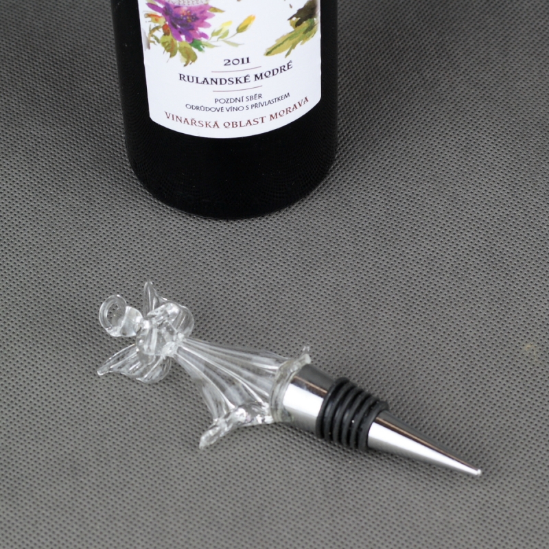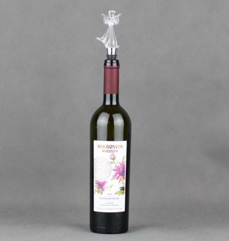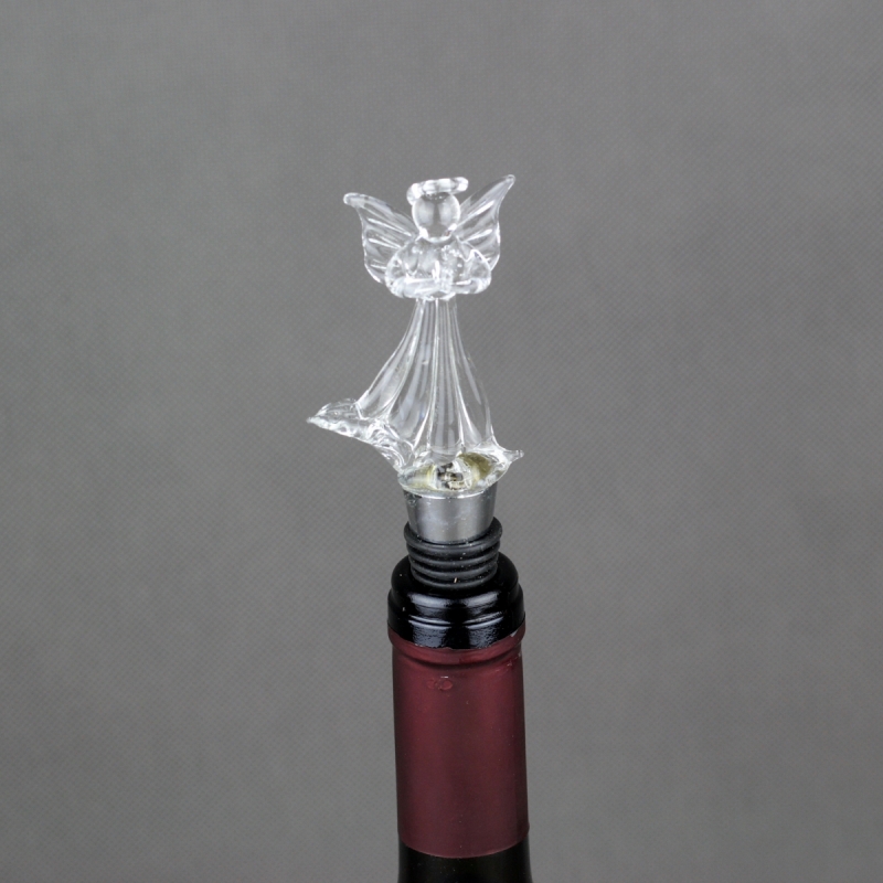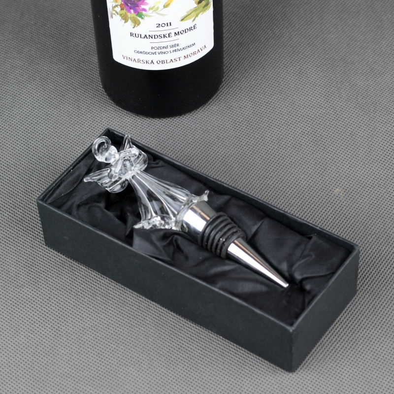 Klasická kovová zátka s gumovým tesnením je doplnená o motív anjelika. Vhodné ako darček - luxusné darčekové balenie (čierna papierová darčeková krabička s čiernym lesklým textilom).
