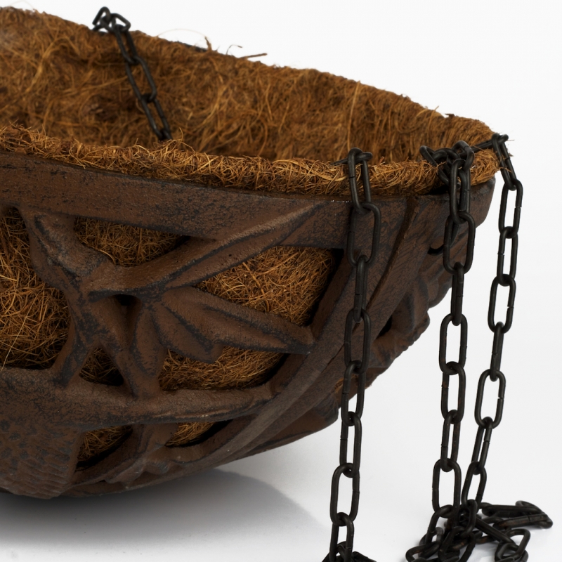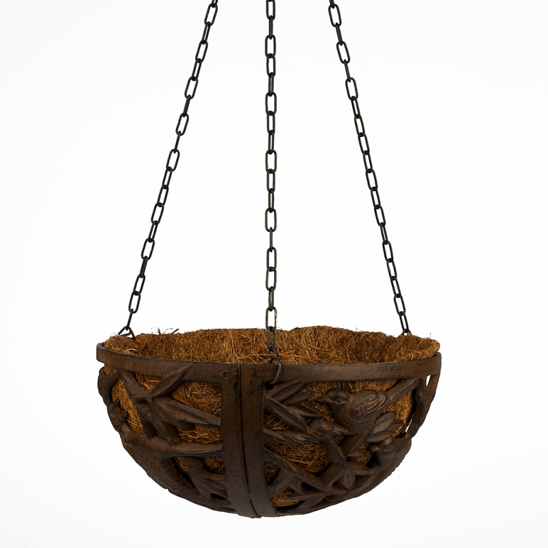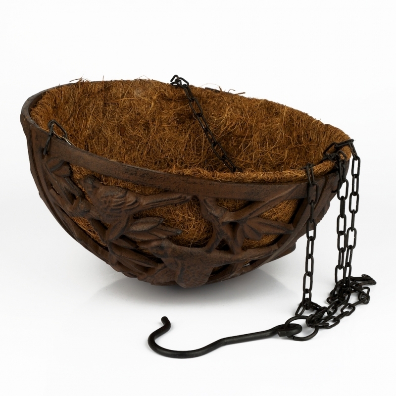 Záves na kvety je vyrobený z liatiny a zdobí ho liatinový motív vtáčikov . Celkové rozmery závesu sú 68 cm , priemer kvetináča je 25 cm . Doprajte svojim kvetinám kvalitný , odolný a zároveň pôsobivý domček.