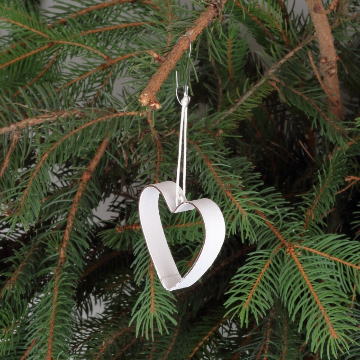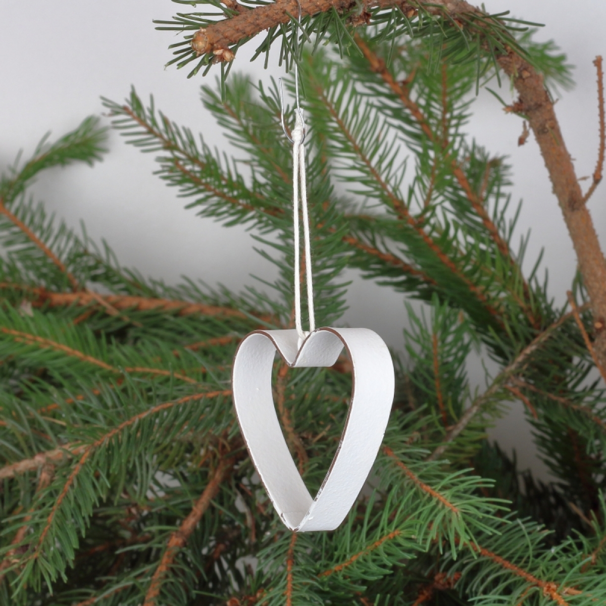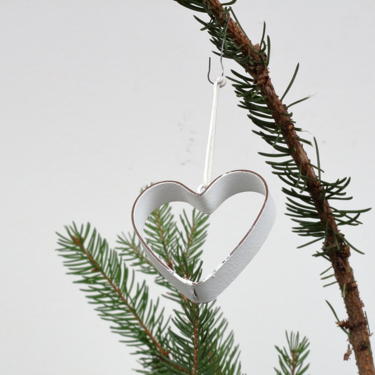 Kovové srdiečko je zavesené na jutovom povrázku.