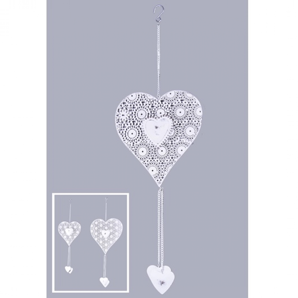 Závesná dekorácia kovové srdce na retiazke 15x14cm
