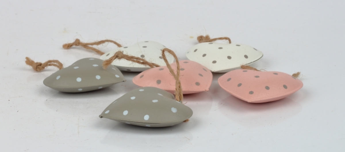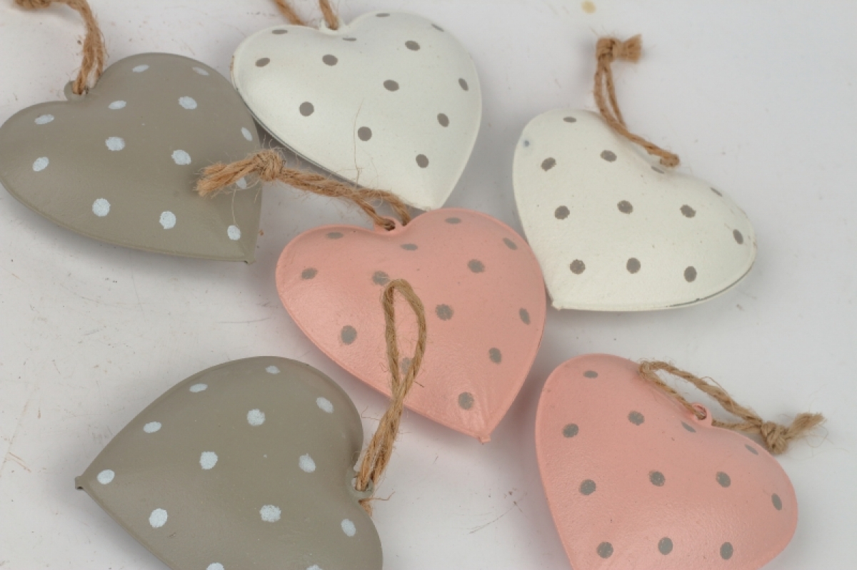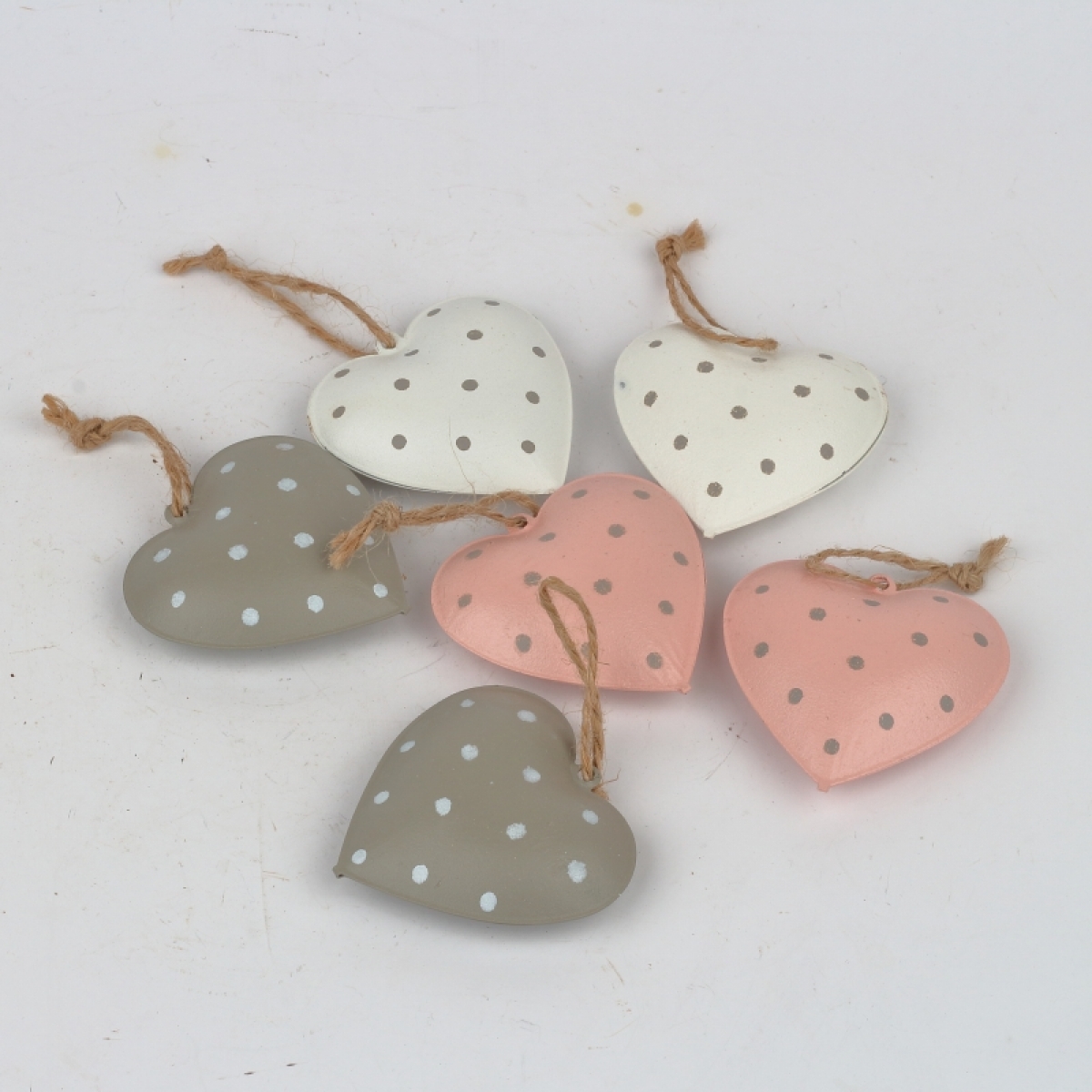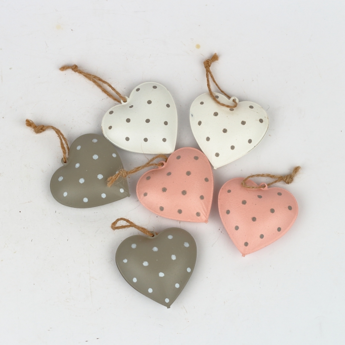 Závesná dekorácia kovové srdce s bodkami (box 6ks)