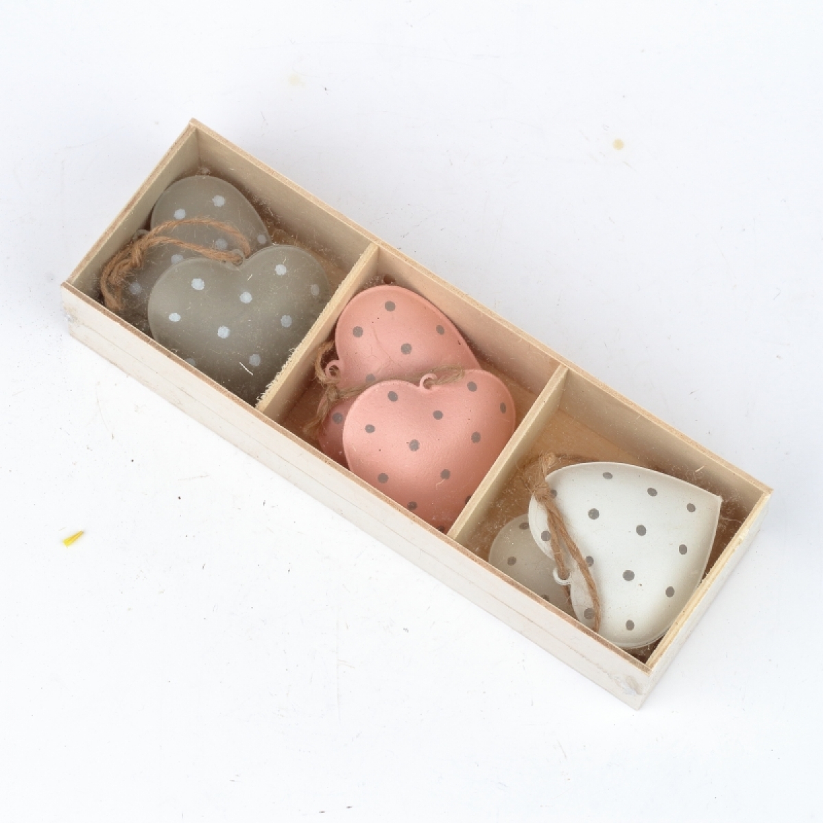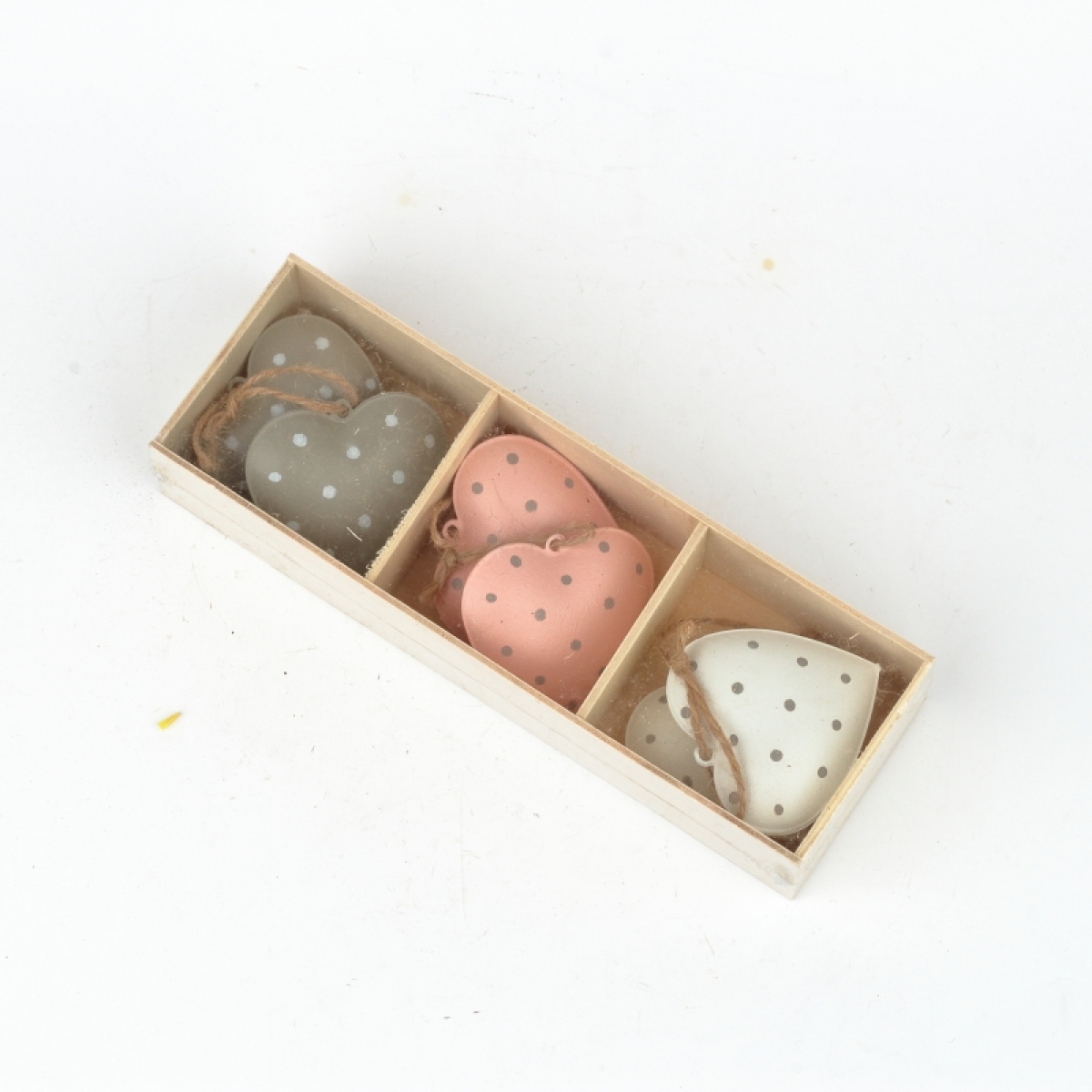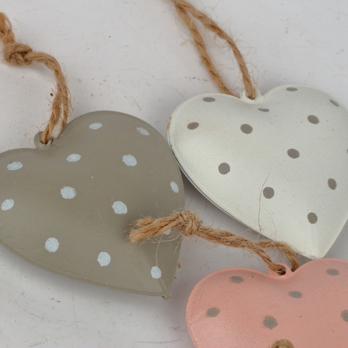 Závesná dekorácia kovové srdce s bodkami (box 6ks)
