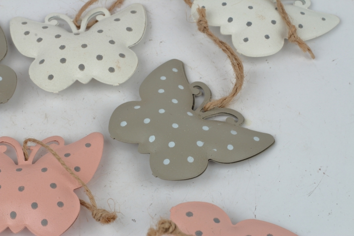 Závesná dekorácia kovový motýľ s bodkami (box 6ks) využijete pri vytváraní rôznych sezónnych dekorácií a aranžmány. Ak túžite po jednoduchosti, prineste si z vychádzky pár konárov vŕby a ozdoby na ne jednoducho rozvešajte.