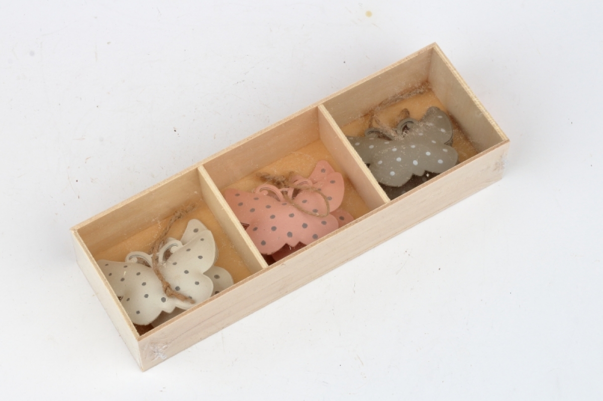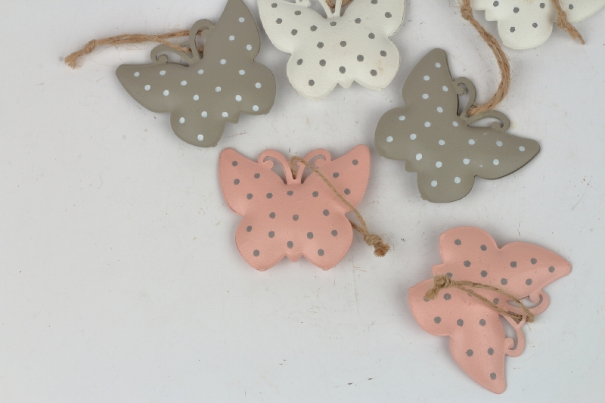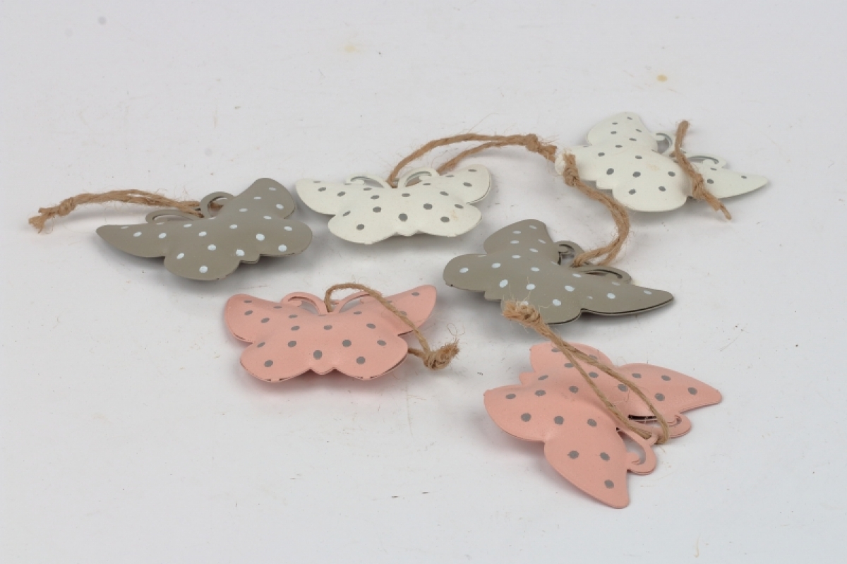 Závesná dekorácia kovový motýľ s bodkami (box 6ks)