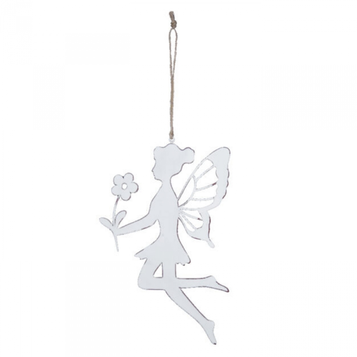 Závesná dekorácia v podobe malej víly v bielej farbe.