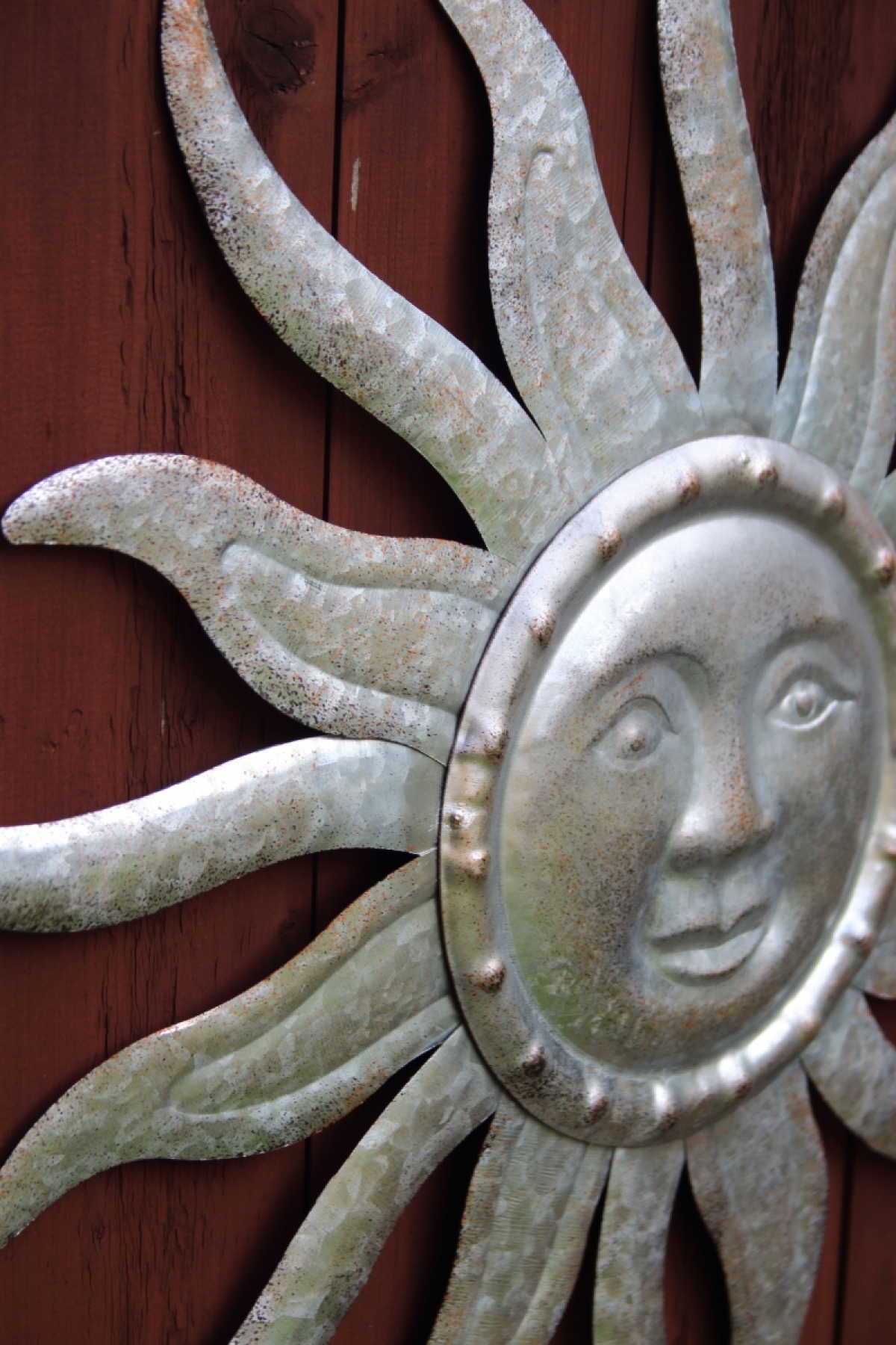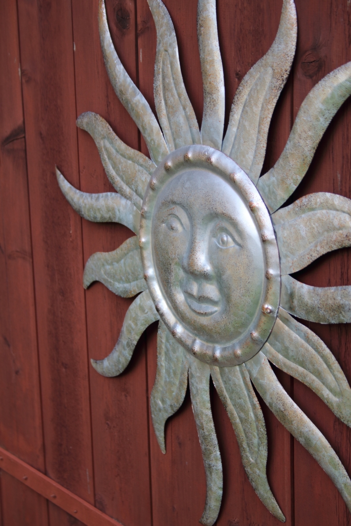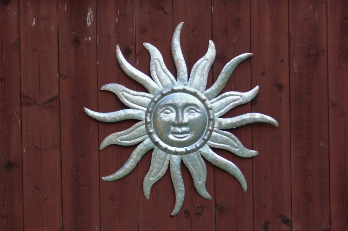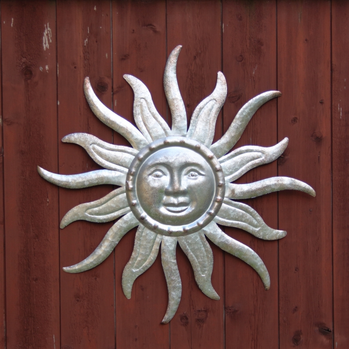 Závesná dekorácia na stenu v tvare strieborného slnka