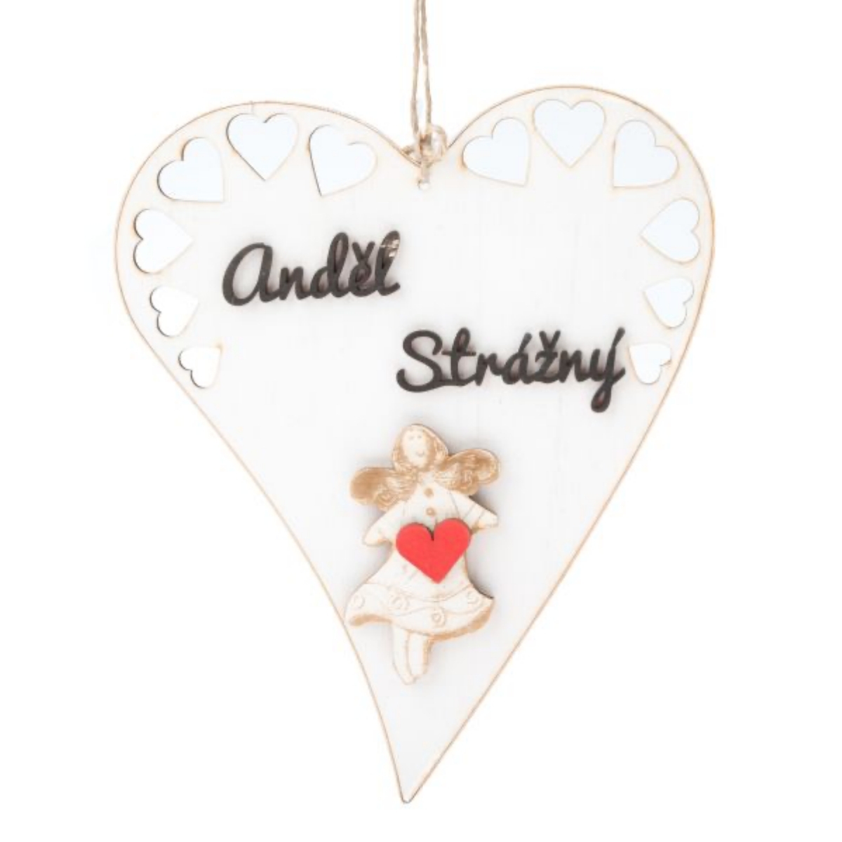 Závesná dekorácia srdce so strážnym anjelom 18,5 x 23 cm drevené