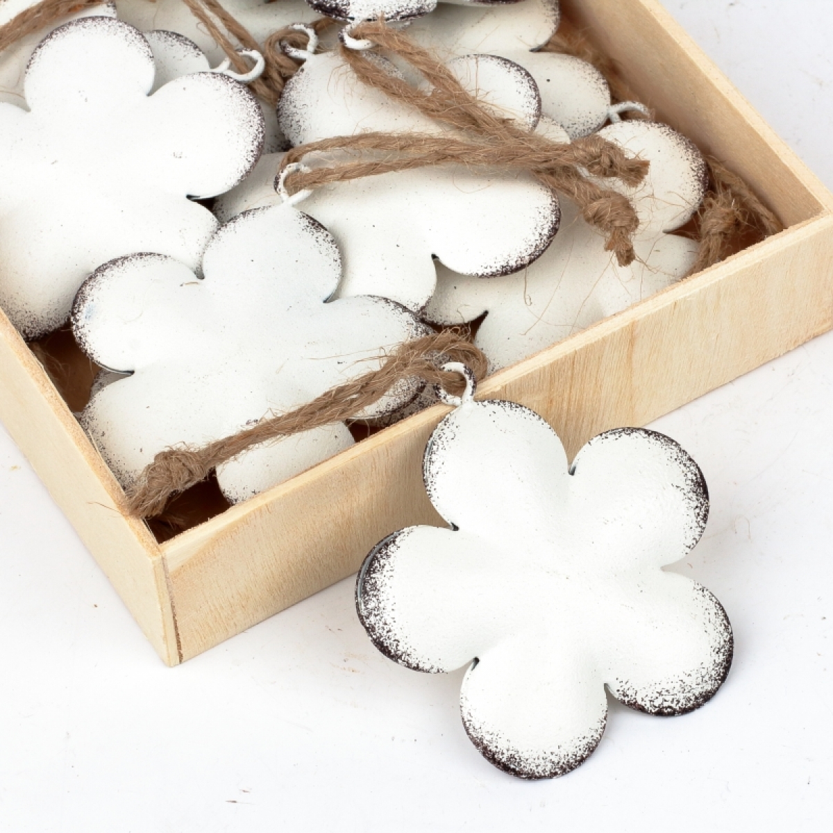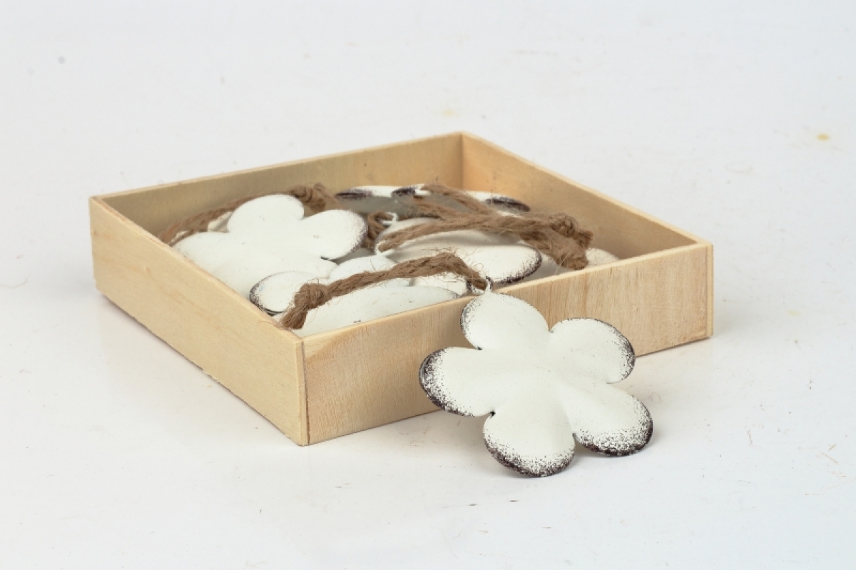 Závesná kovová dekorácia kvetina biela 5,5cm môže slúžiť ako prízdoba do vencov a aranžmánov, alebo je rozvešajte na vetvu vo váze. Uvidíte, ako hravo a sviežo bude zrazu interiér pôsobiť.