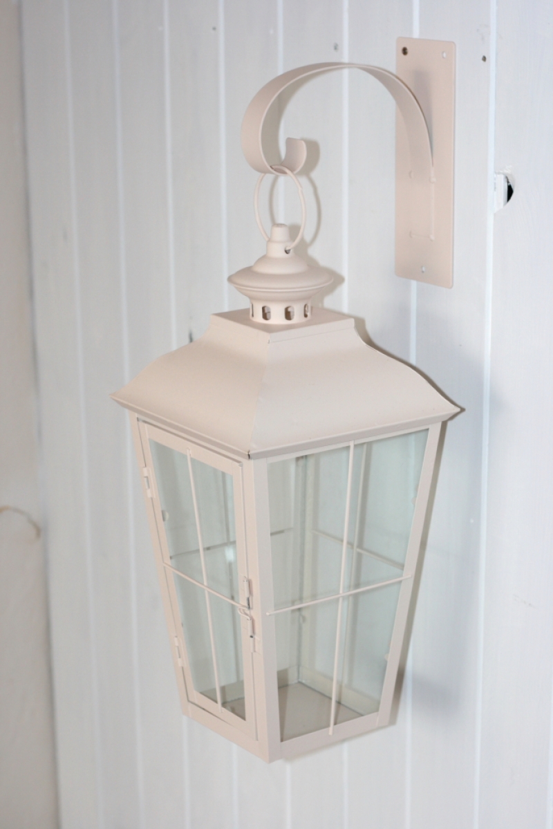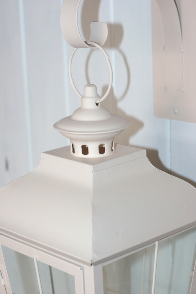 Závesná kovová lampáš biela 41x20x20cm spoločne s kovovou konzolou tvorí prekrásnu nástennú dekoráciu, ktorú môžete skrášliť domov aj záhradné posedenie.