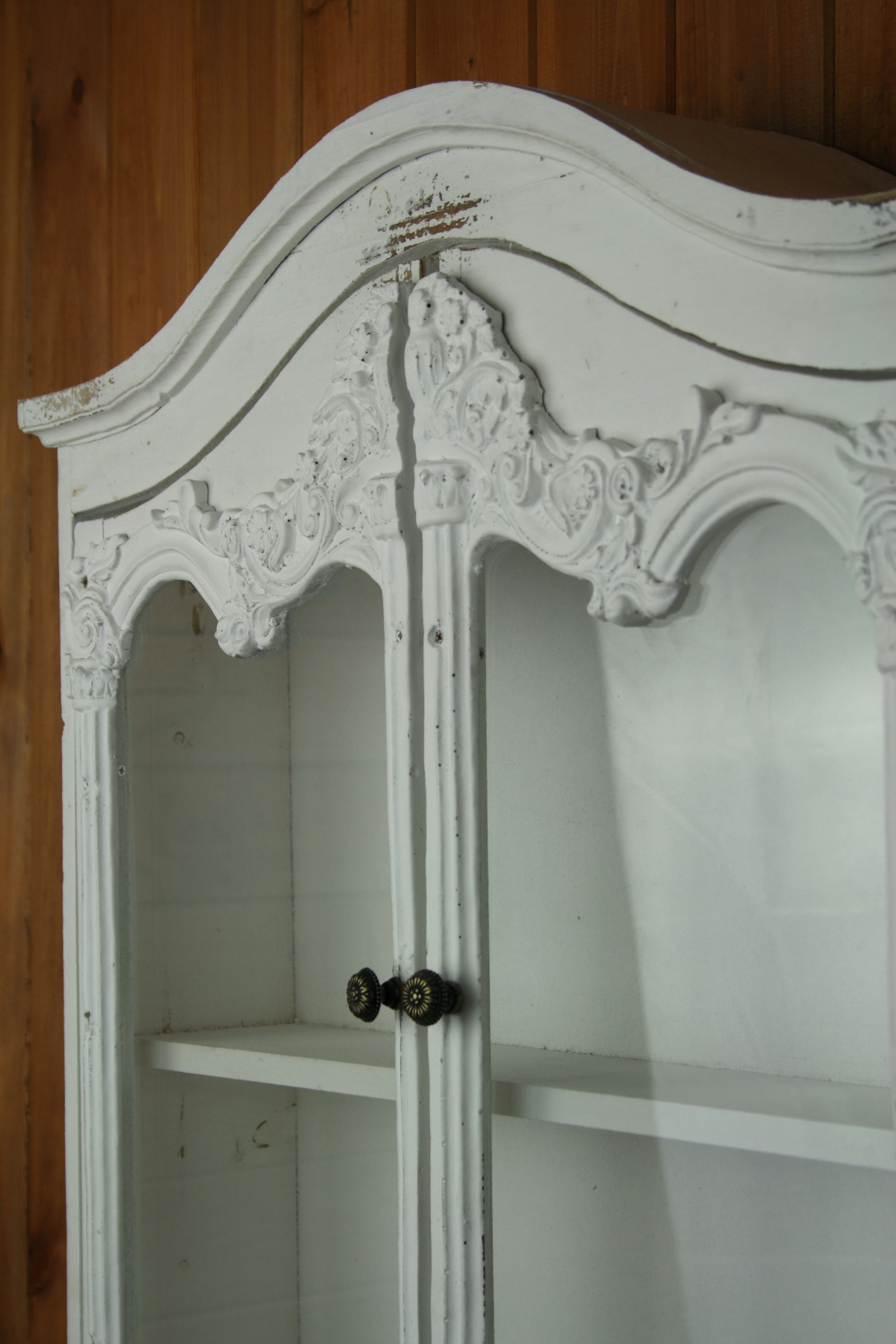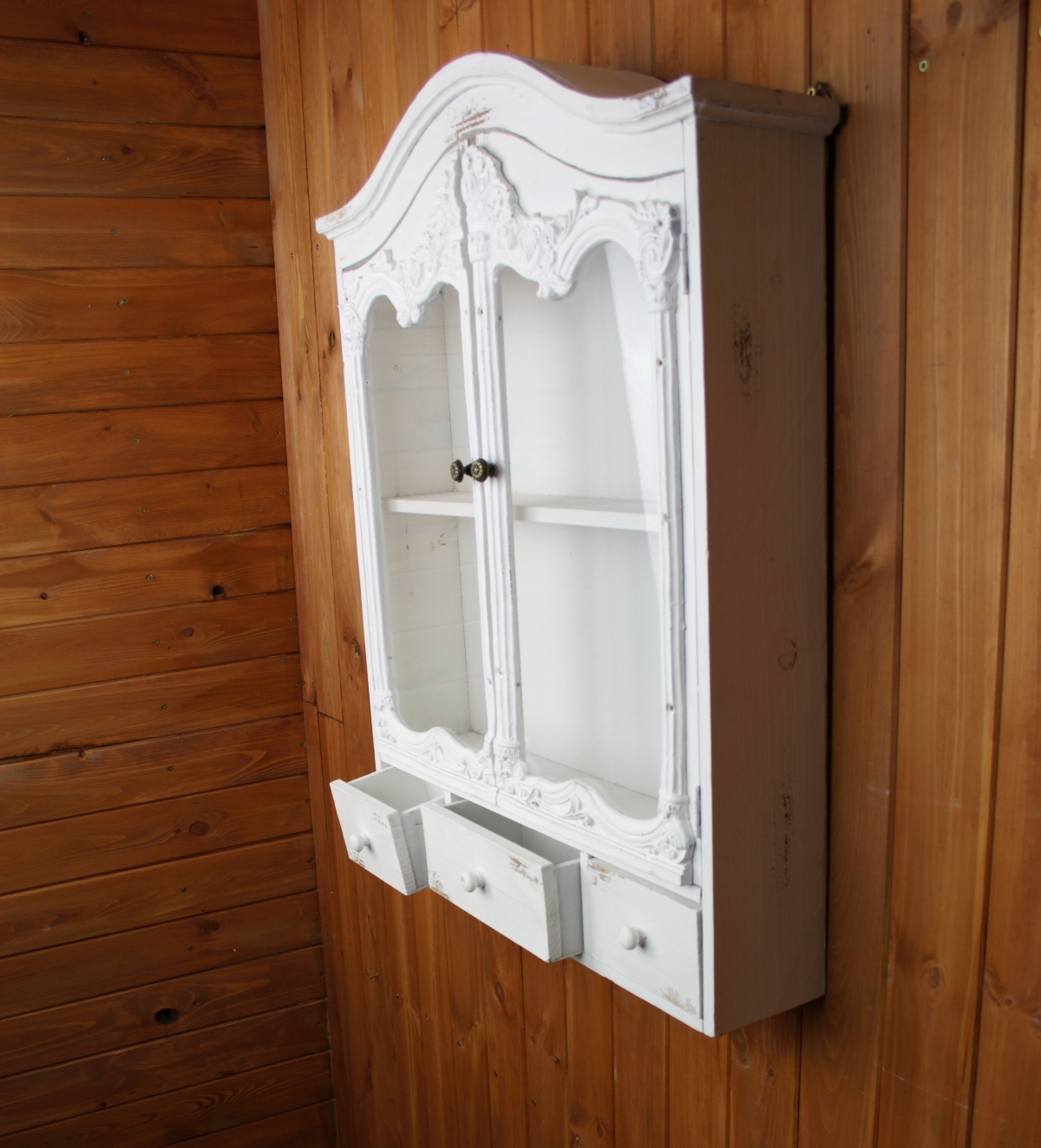 Závěsná skříňka Provence je vyřazená z důvodu chybějící skleněné výplně.
