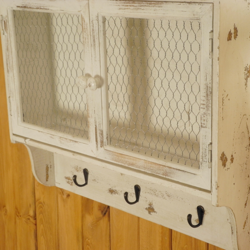 Závesná skrinka s králičím pletivom a háčiky 47x58x15cm
