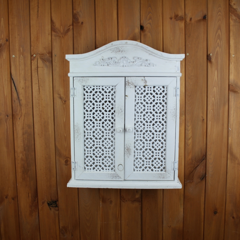 Závesná skrinka je bohato zdobená krásnymi ornamentami. Skrinka je ako stvorená pre interiér chalupy, ktorým dodá romantický a útulný nádych.