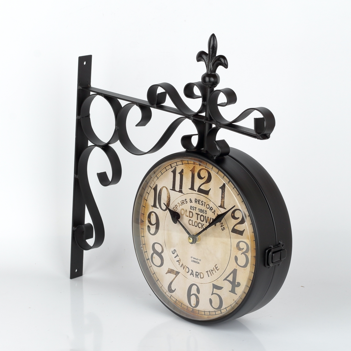 Závesné hodiny, ktoré sú zároveň obojstranné, ľahko pripevníte na stenu a razom vás zanesú do úzkych starých uličiek s malými obchodíkmi. Vytvoríte si tak doma krásnu nostalgickú atmosféru.