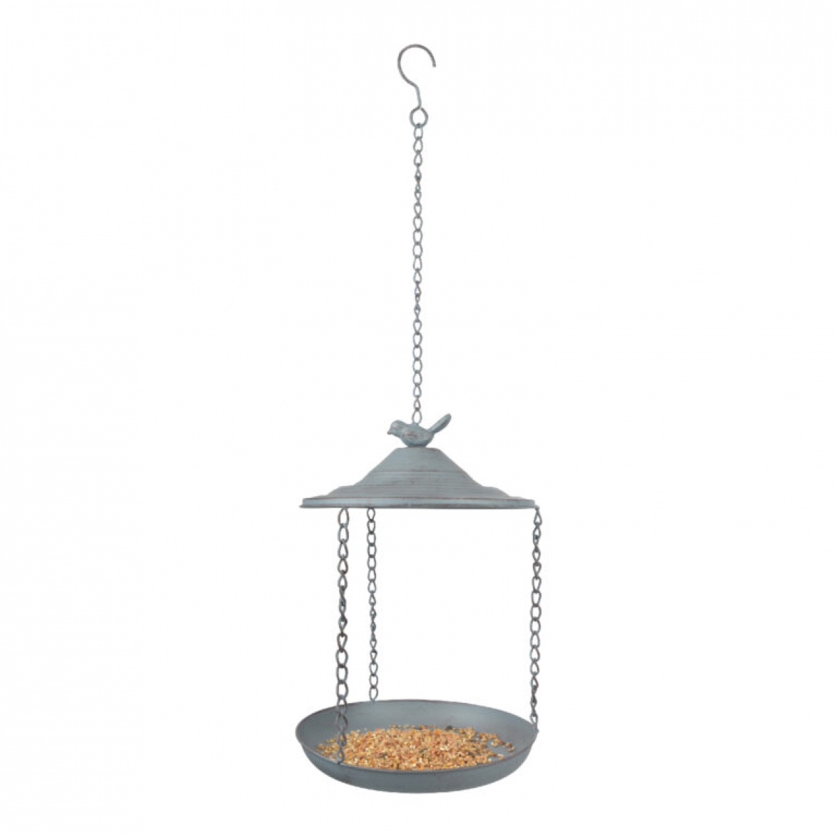 Závesné krmítko pre vtáčiky v šedej farbe s detailom vtáčika