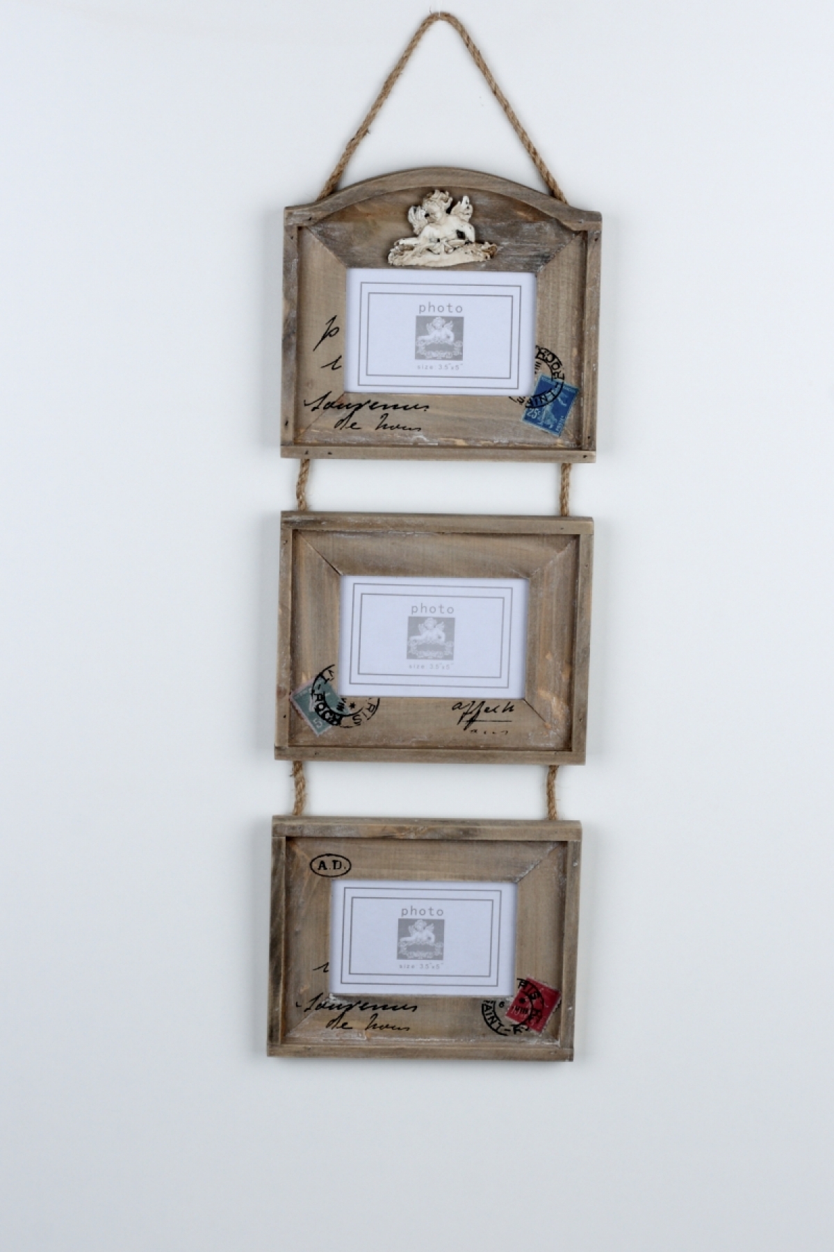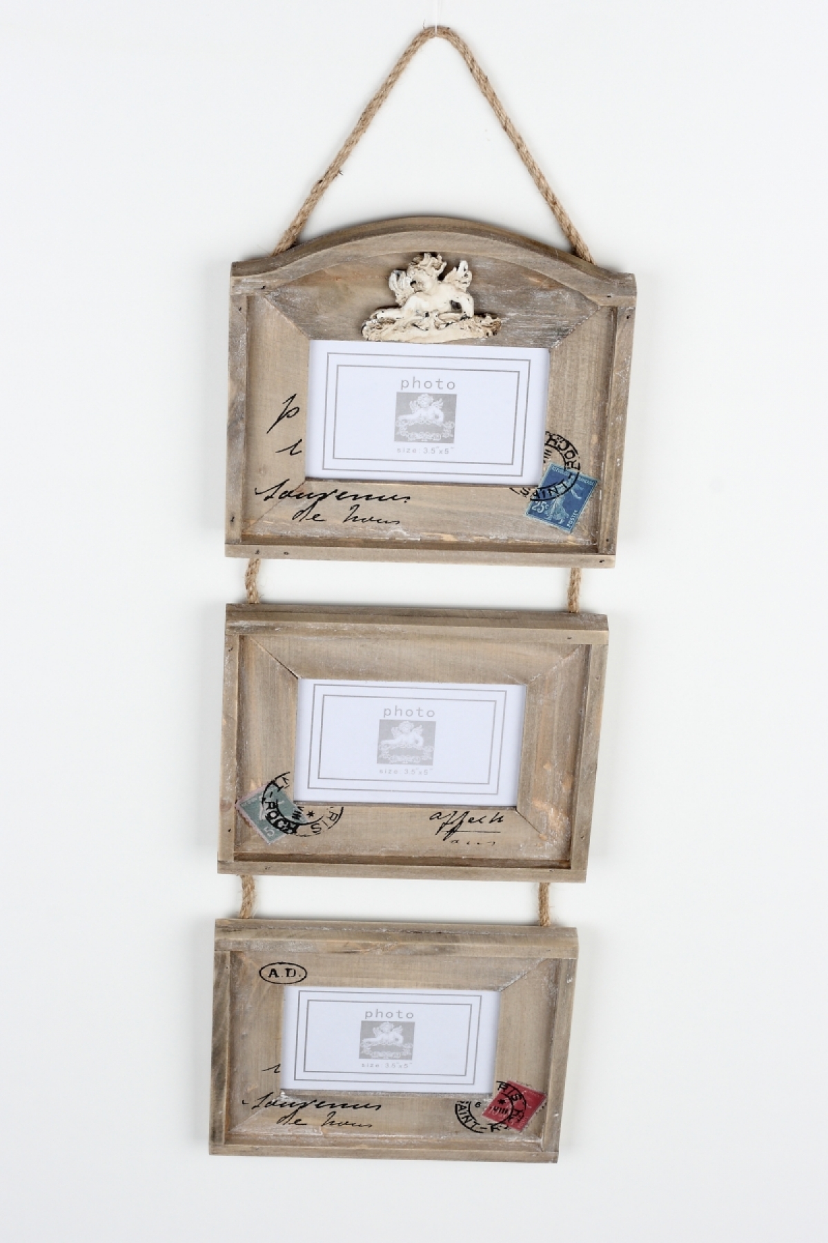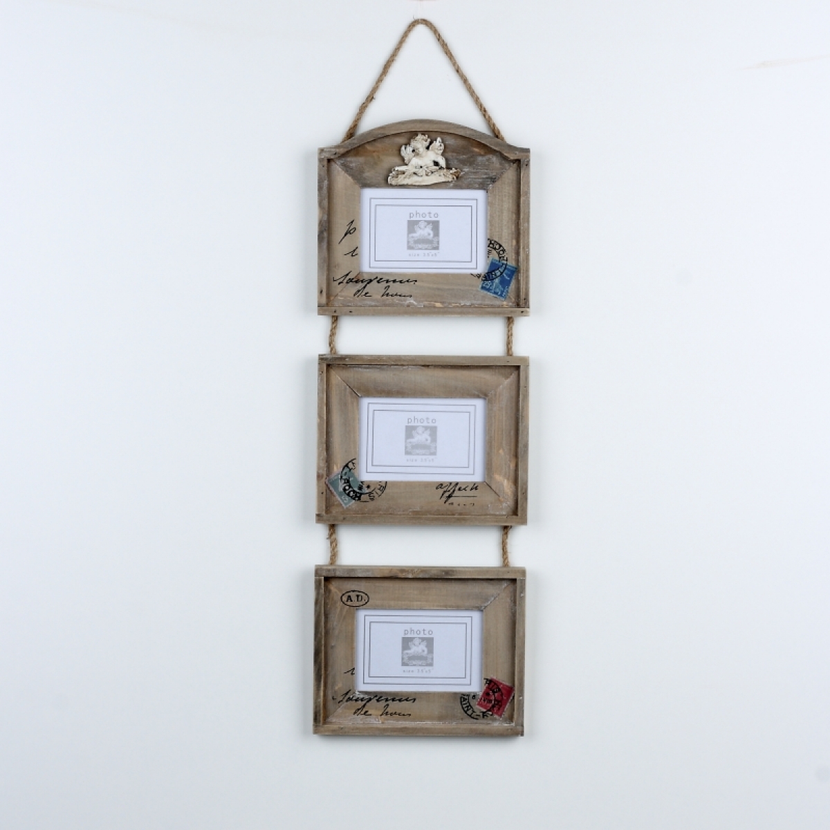 Závesný foto rámček na tri fotografie 58cm v obľúbenom štýle vintage rozžiari Vaše holé steny.