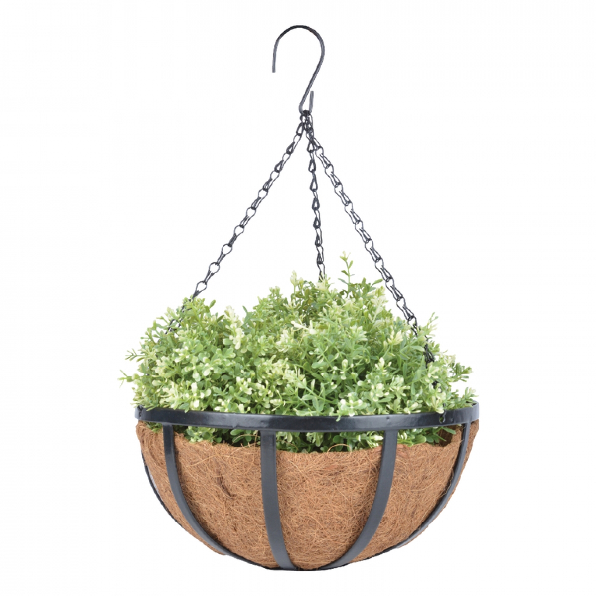 Závesný kvetináč ktorého výplň tvorí kokosová vložka je ideálna pre pestovanie rastlín, ktoré majú rady dostatok priestoru a rastú skôr do šírky ako napr. previsnuté begónie, surfínie alebo jahody.
