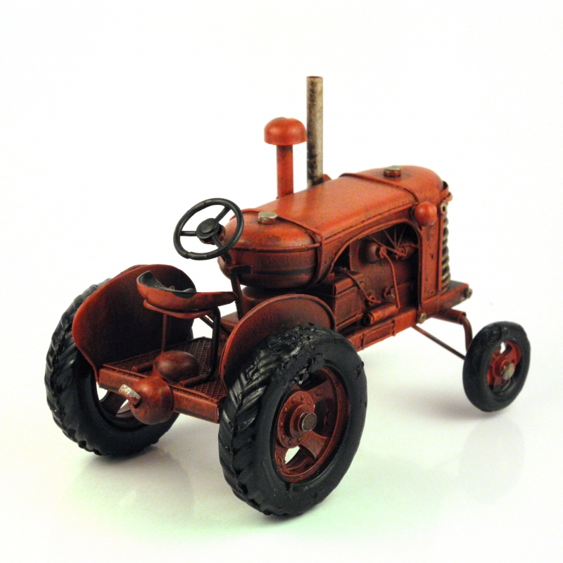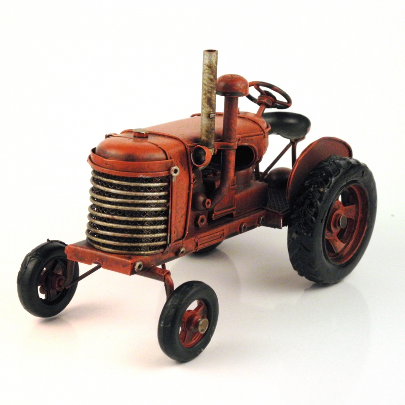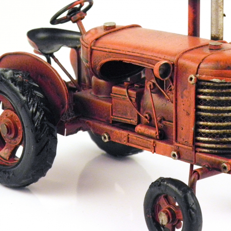 Pre milovníkov poľnohospodárskej techniky a strojov, sme pripravili model starého traktora bez kabínky. Celý model je vyrobený z plechu a kovových častí. Iba pneumatiky sú z gumy.