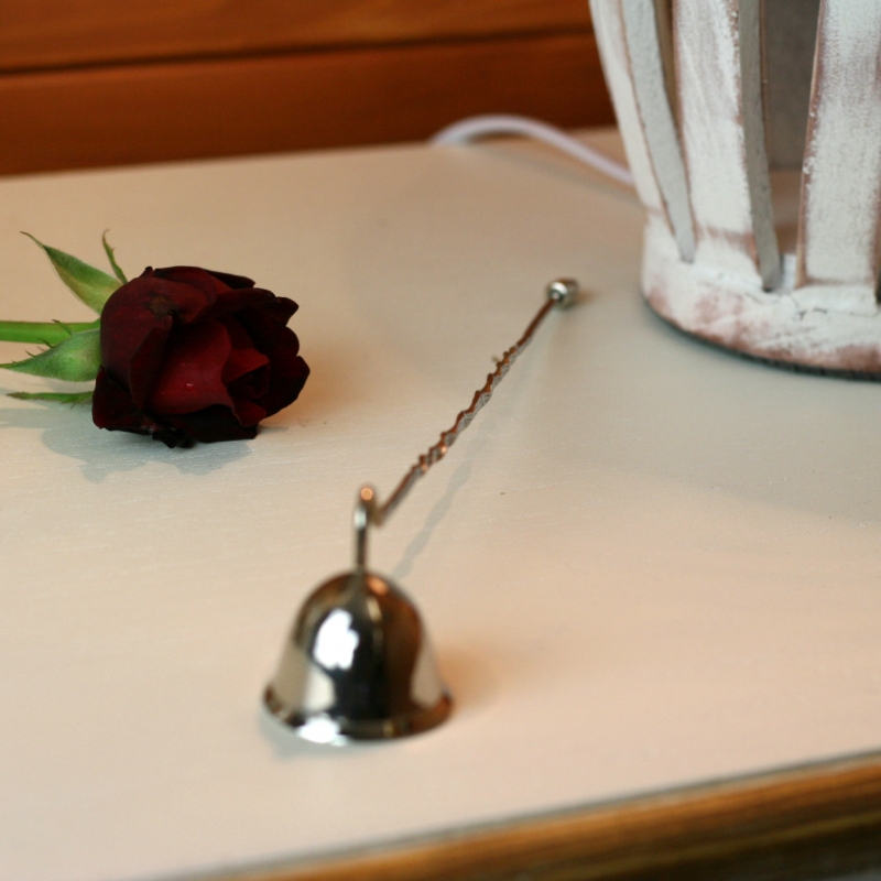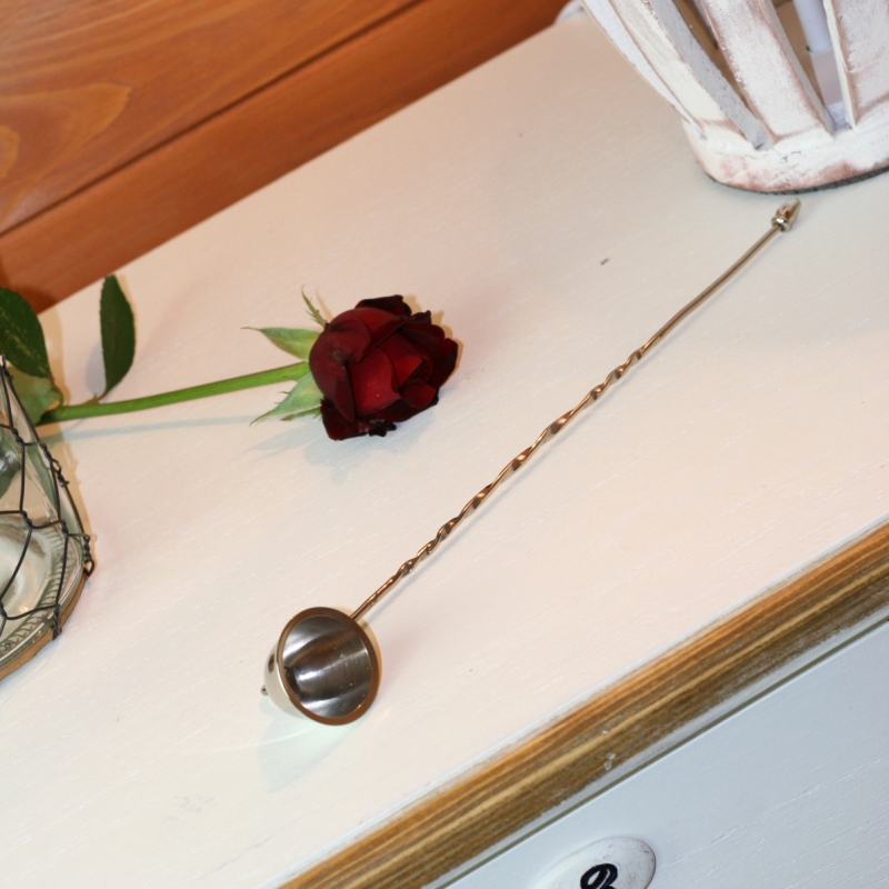Zhasínátko na sviečky 27cm poteší všetkých, ktorým sa už iste párkrát stalo, že sa vosk pri sfúknutiu vylial na stôl. Praktické zhasínátko zabráni týmto situáciám a predovšetkým ďalším zničeným stolom a obrusom. Zhasínátko má ozdobné krútené madlo v zámockom štýle.