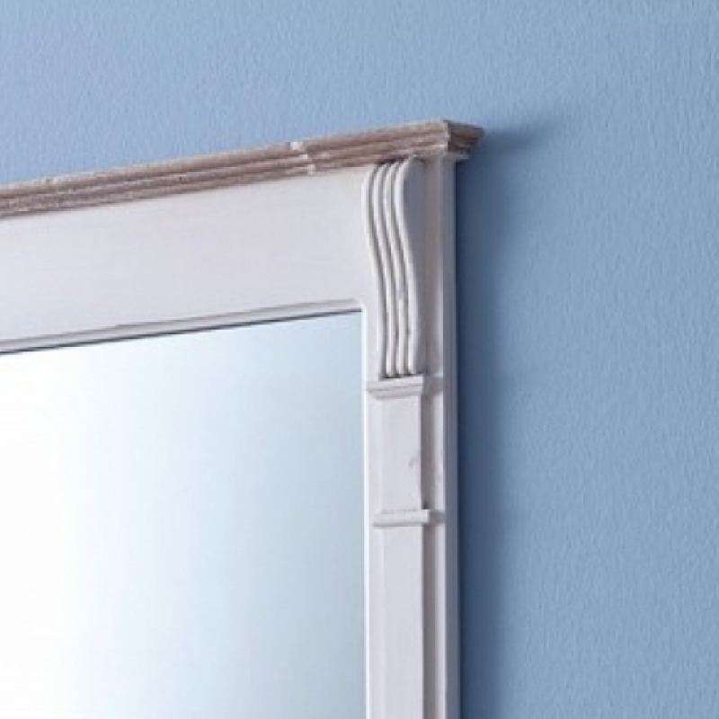 Zrkadlo SAVOY je zasadené do bieleho rámu , ktorý je v hornej časti zdobený sústružením . Horná lišta vystupuje a ako by chráni lesklú plochu zrkadla . Tovar bude dodaný tretí deň od objednania .