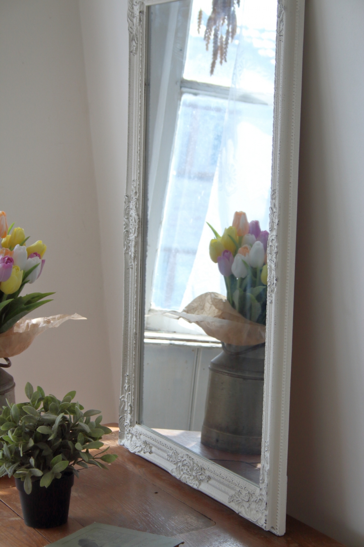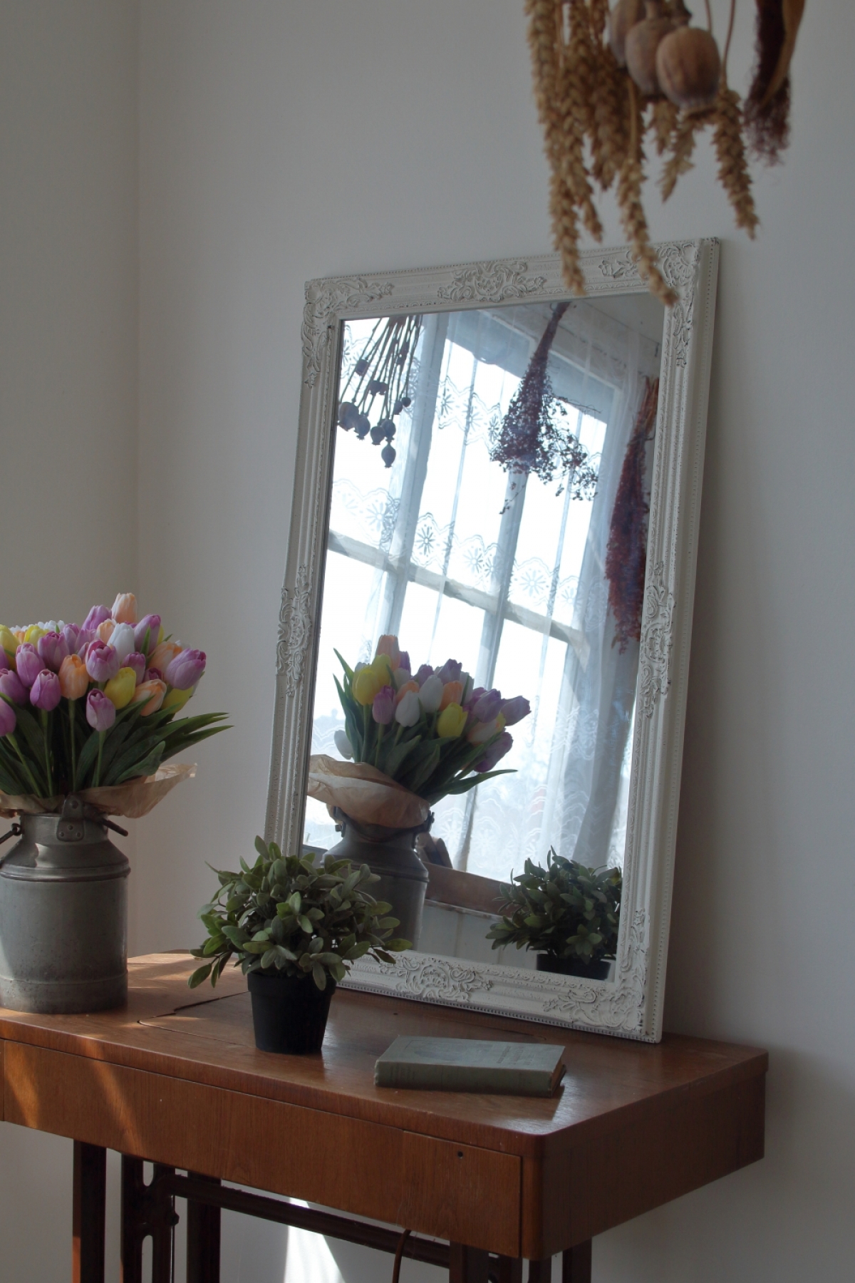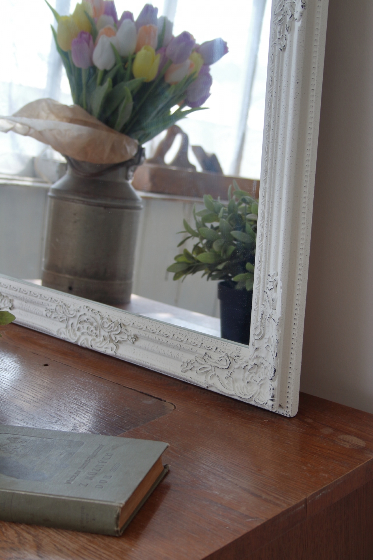 Zrkadlo drevené staro biela 60x90cm pre milovníkov romantického štýlu vidieka.