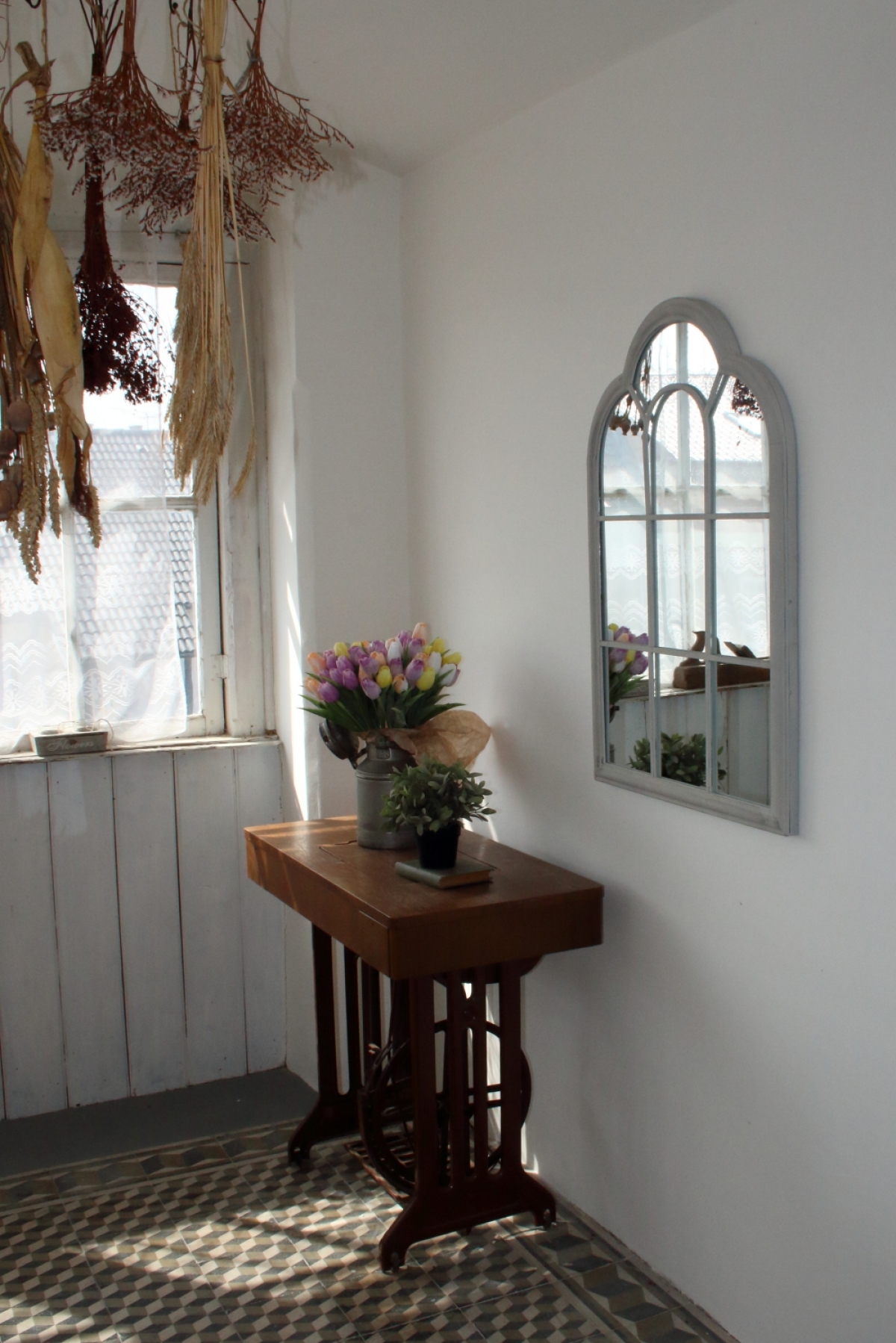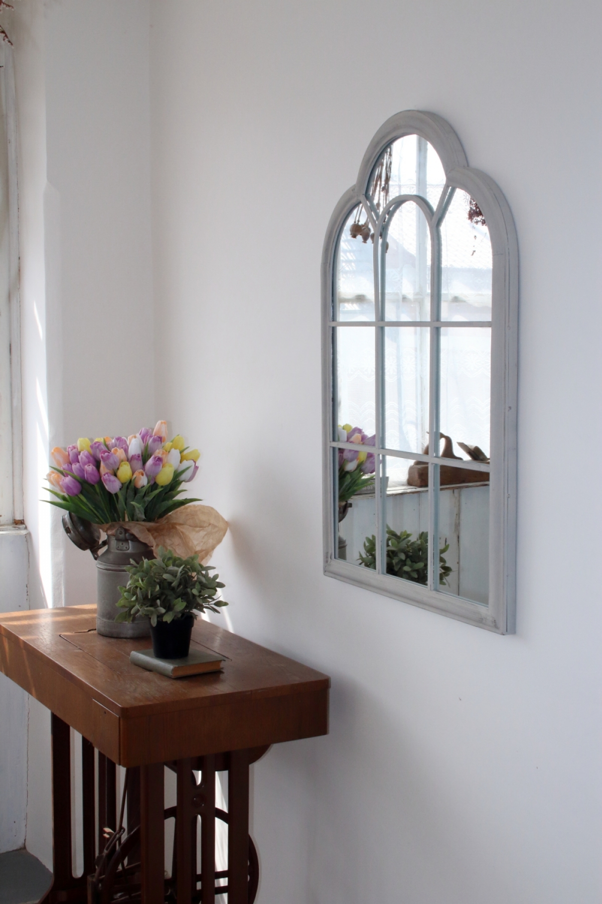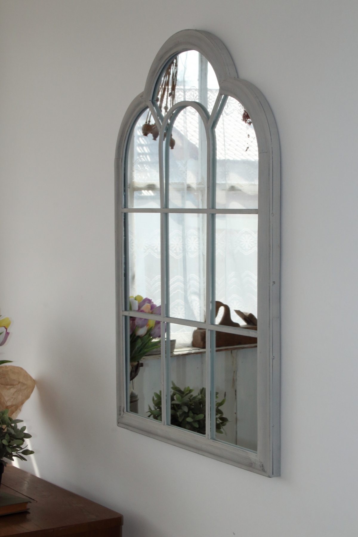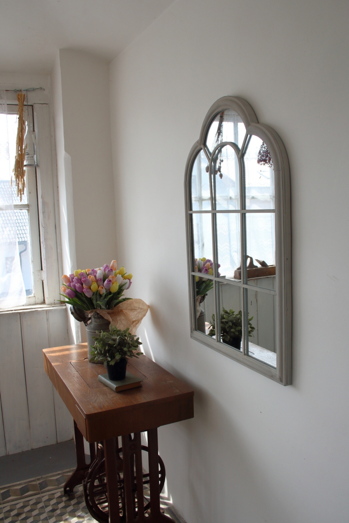 Zrkadlo s vitráží 61,6x3,8x90,5 cm pripomína stará rímska okna.